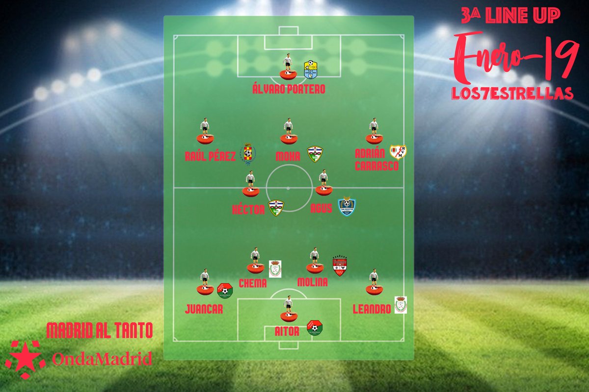 Junto a Adrián Carrasco también se encuentran otros exrayistas en el once inicial. Álvaro Molina (ex Rayo B) y Raúl Pérez (ex Juvenil A) se encuentran entre los mejores del pasado mes.