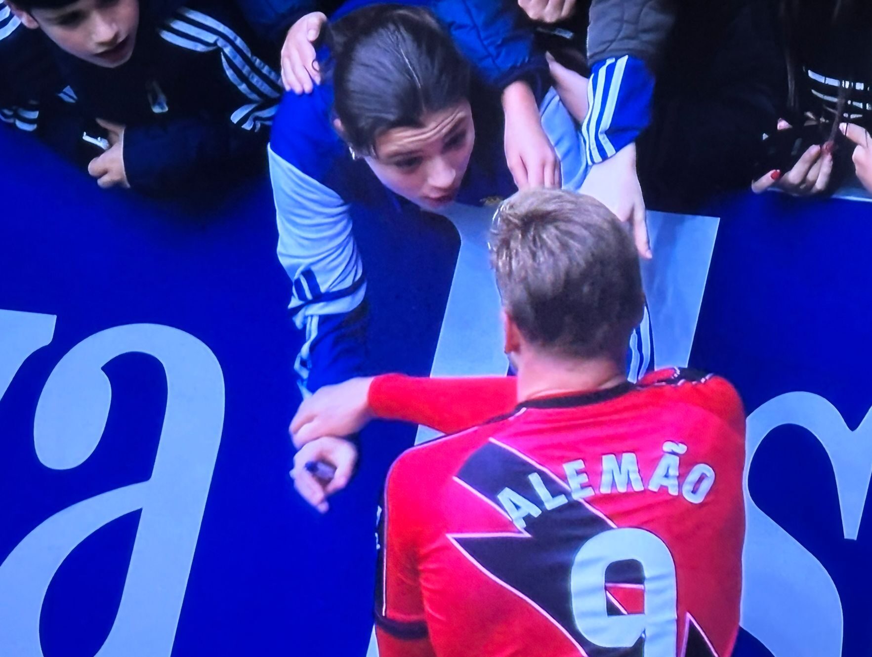 El jugador del Rayo Vallecano, Alemão, volvió al Carlos Tartiere, donde fue ovacionado y recibido con cariño por los aficionados del Oviedo. Al finalizar el partido, el delantero se acercó a la grada para devolverles las muestras de cariño.