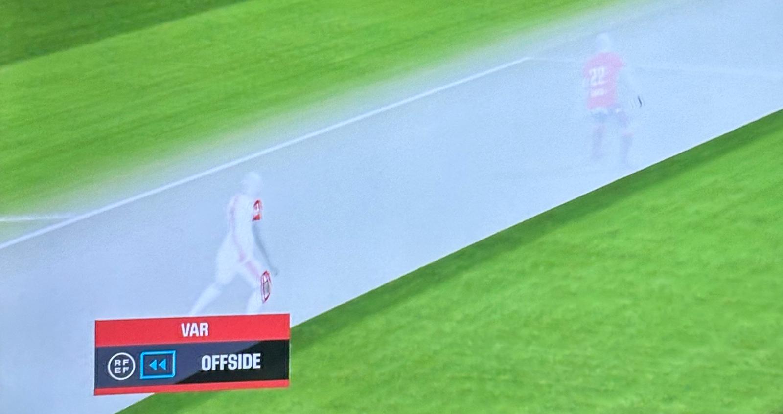 El Rayo Vallecano empató el partido ante Osasuna en el minuto 26 gracias al gol de Jorge de Frutos, pero el árbitro en primera instancia y el VAR confirmó que era fuera de juego. Las imágenes mostradas se ven como el futbolista franjirrojo está por delante en apenas unos centímetros.