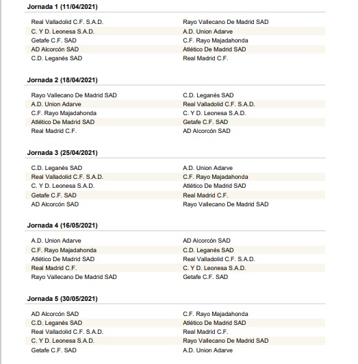 La Real Federación Española de Fútbol (RFEF) ha publicado este lunes el calendario del Grupo 5 por el título en la División de Honor Juvenil A (Grupo 5C). El Rayo Vallecano Juvenil A ya conoce a sus rivales.