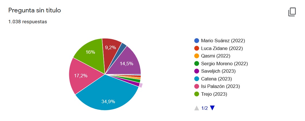 Con más de 1000 votos, el 35% de ellos han ido a parar a Alejandro Catena quien es el favorito de la afición para ser renovado. Le siguen Isi (17%), Trejo (16%) y Santi.