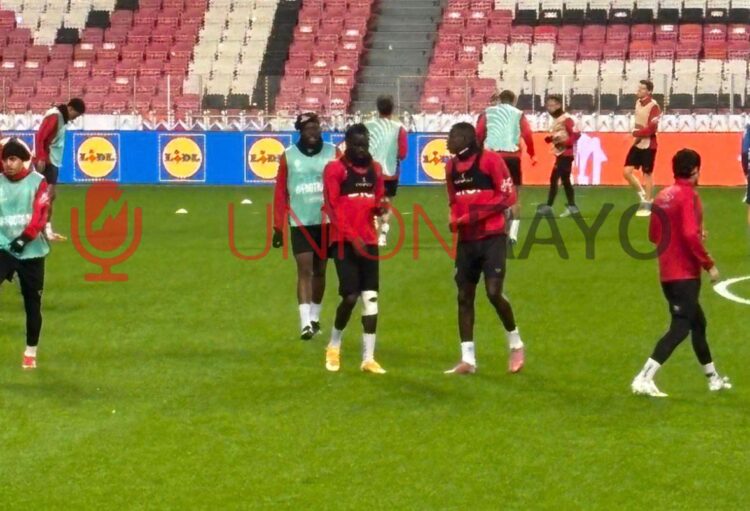 En el entrenamiento previo se ha podido ver a Pathe Ciss con un vendaje en su rodilla izquierda. El mediocentro sufrió un duro golpe el pasado miércoles en el partido de LaLiga ante el Real Oviedo. Un lance del juego que le acabó dejando tocado y fuera de la convocatoria para el partido ante el Sevilla en el Sánchez Pizjuán. Sin embargo, entrenó el sábado, aunque quiso guardar reposo.