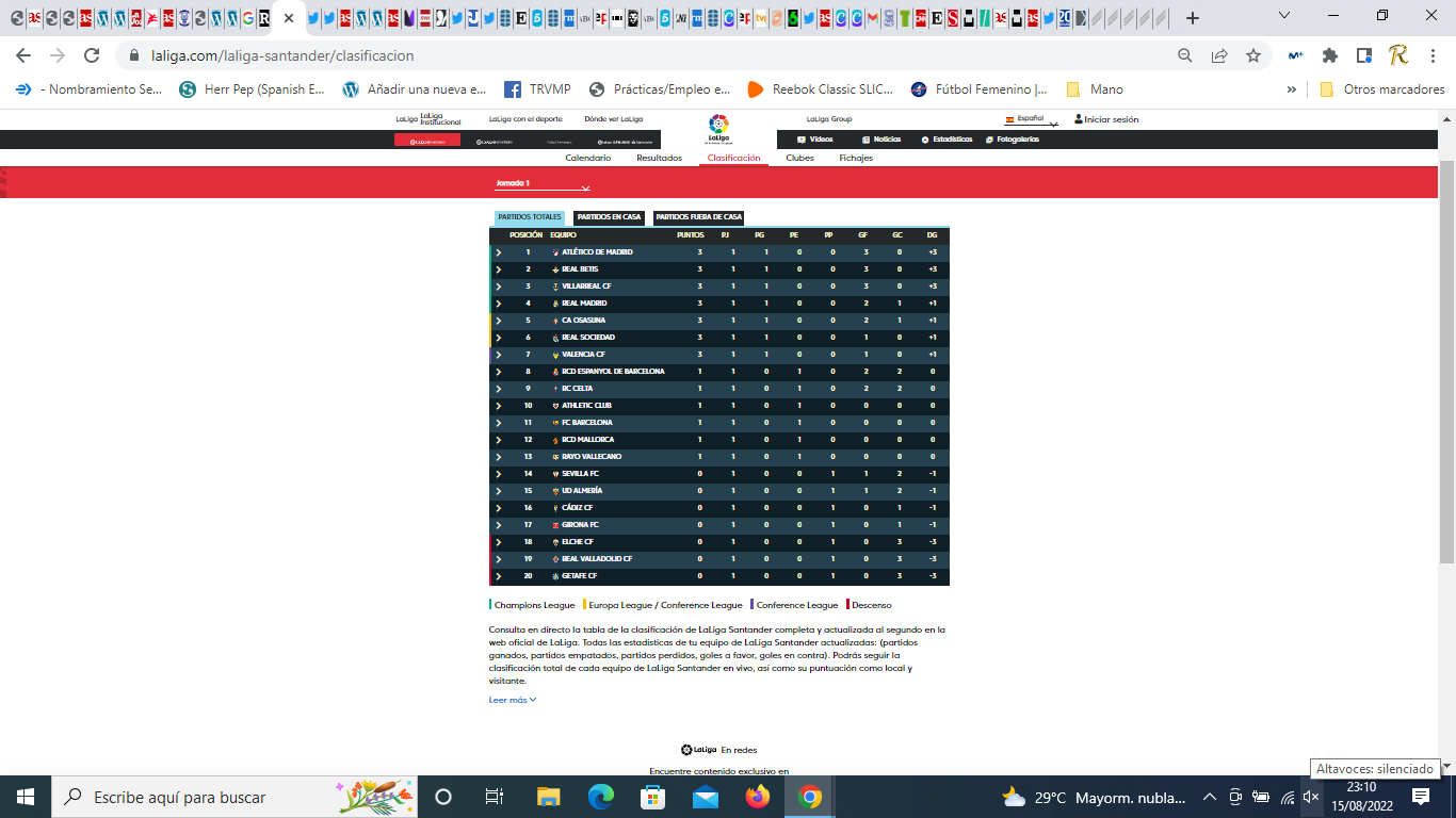Clasificación del Rayo Vallecano en la Jornada 1 LaLiga Santander