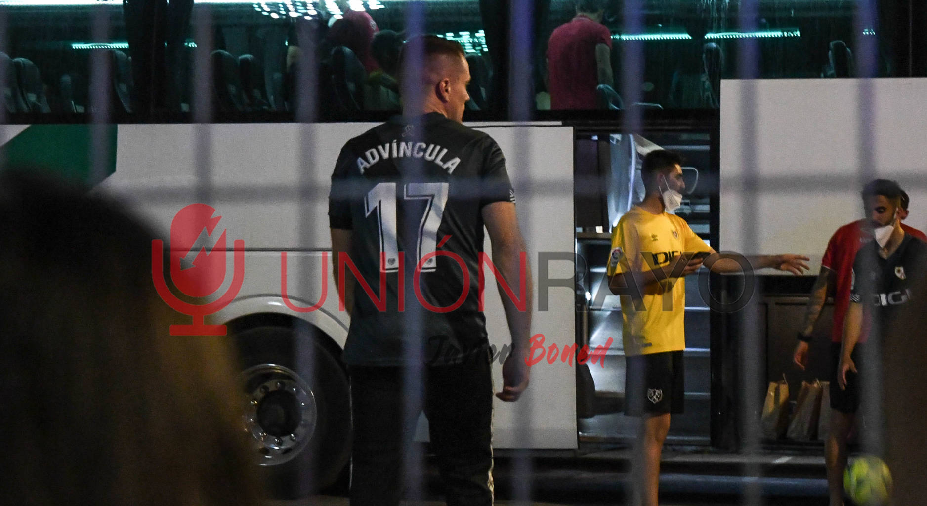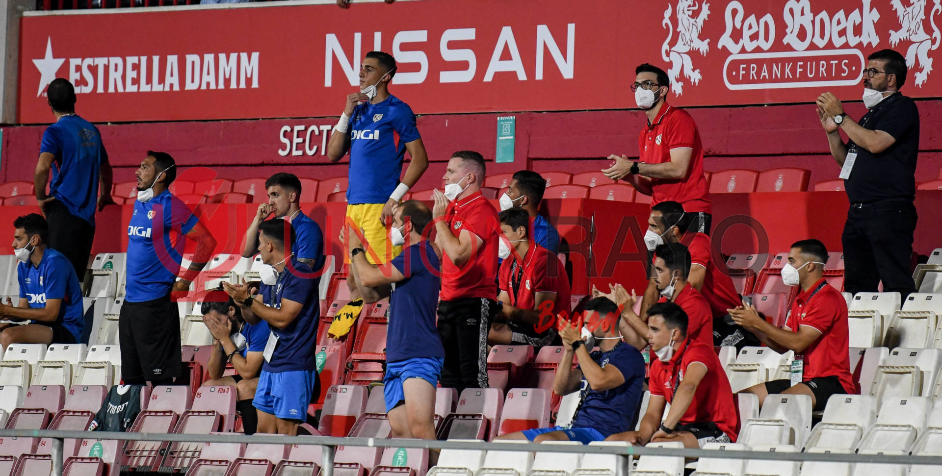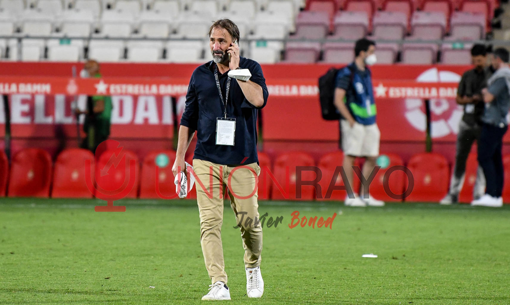 Toda la expedición del Rayo Vallecano estuvo en Montilivi. Los franjirrojos (jugadores, directiva y algunos empleados) estuvieron solos. Sin afición ni apenas familiares.