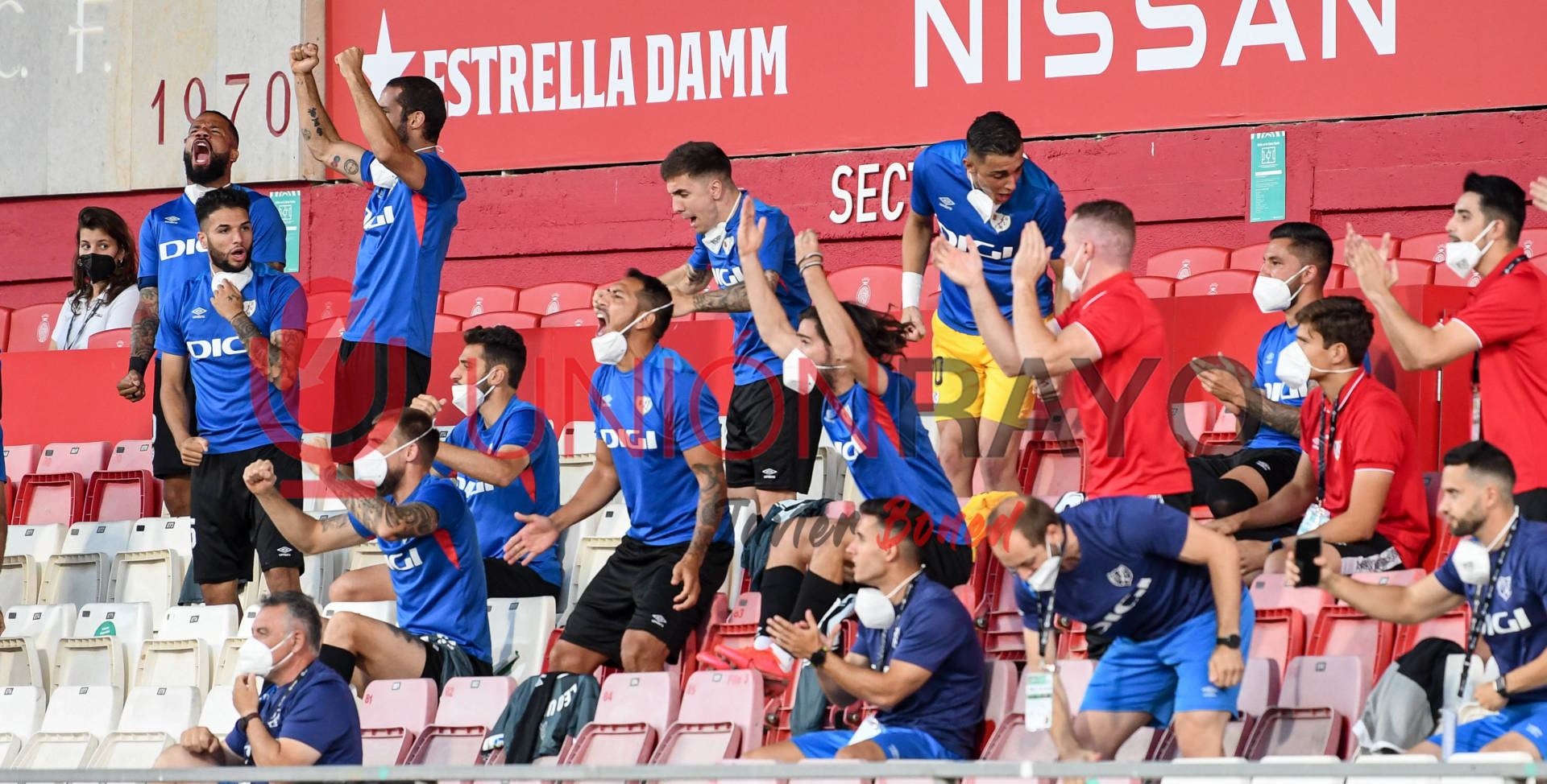 Las caras cambiaron radicalmente en la grada de futbolistas. Un gran número aplaudieron y animaron a su compañero Velázquez; otros les podía el nerviosismo.