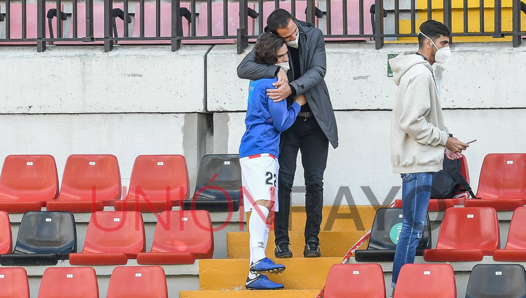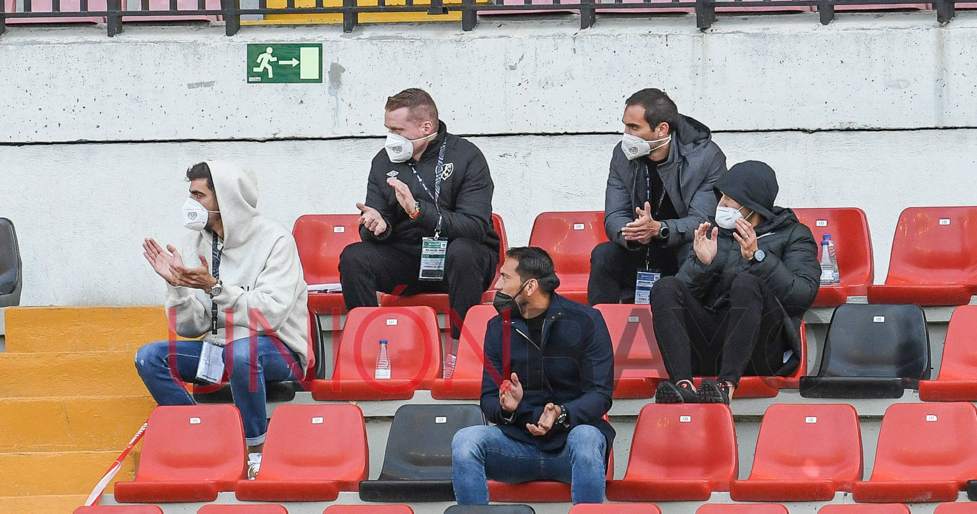 Cobeño y Rubén Reyes bajaron del palco para ver el partido cerca de los futbolistas. Ambos en las gradas del estadio de Vallecas.