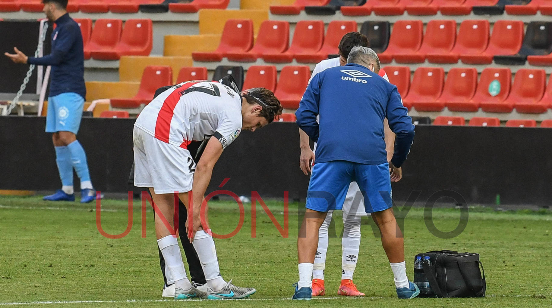 El extremo Álvaro García terminó lesionado. El argentino Trejo y el técnico Andoni Iraola, entre otros, consolaron al ex del Cádiz.