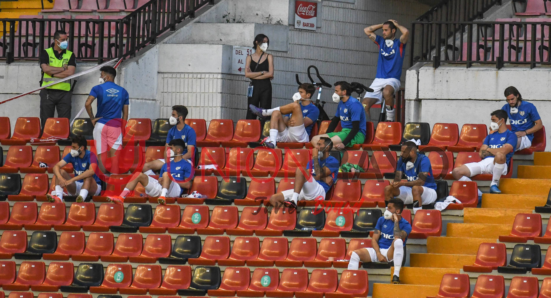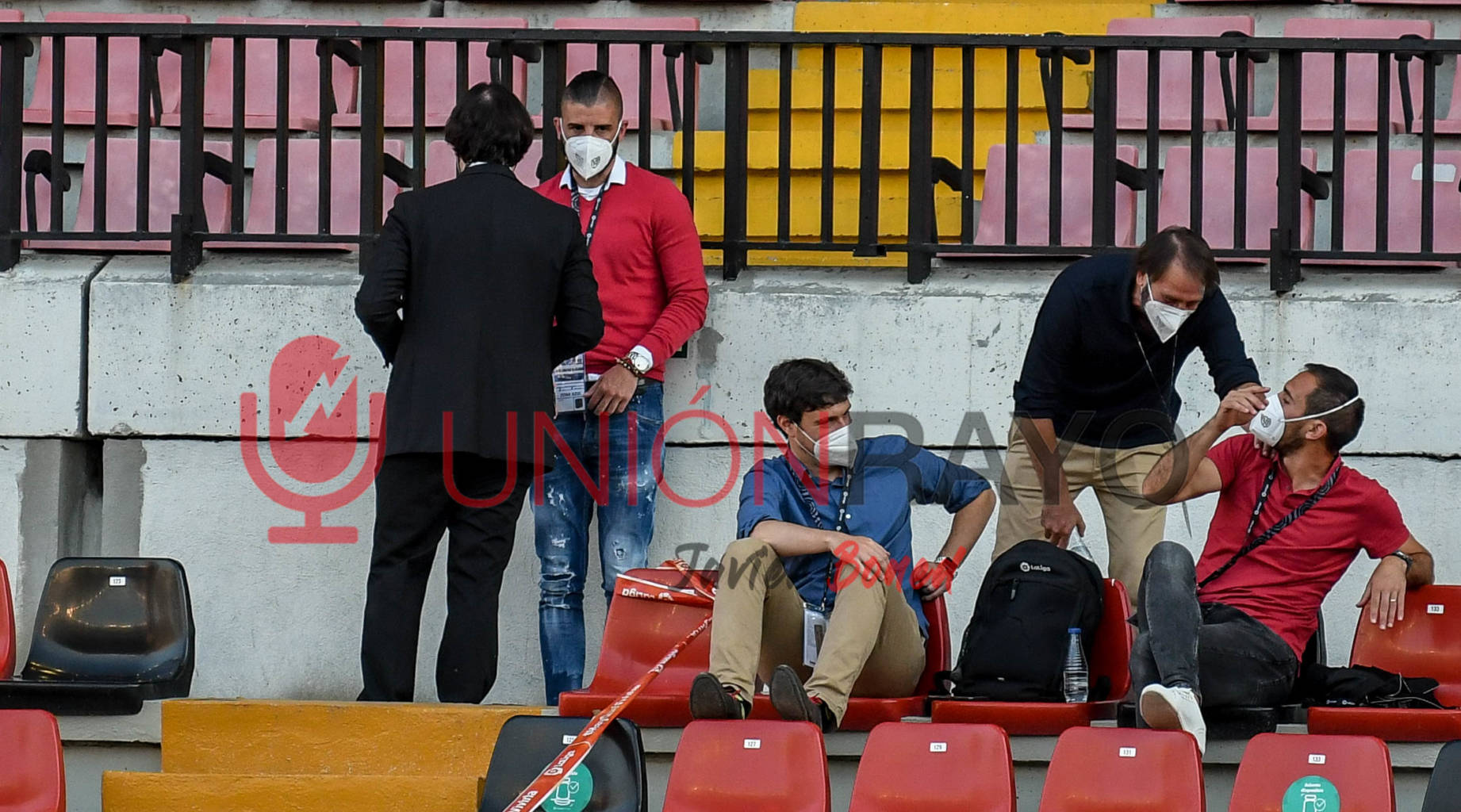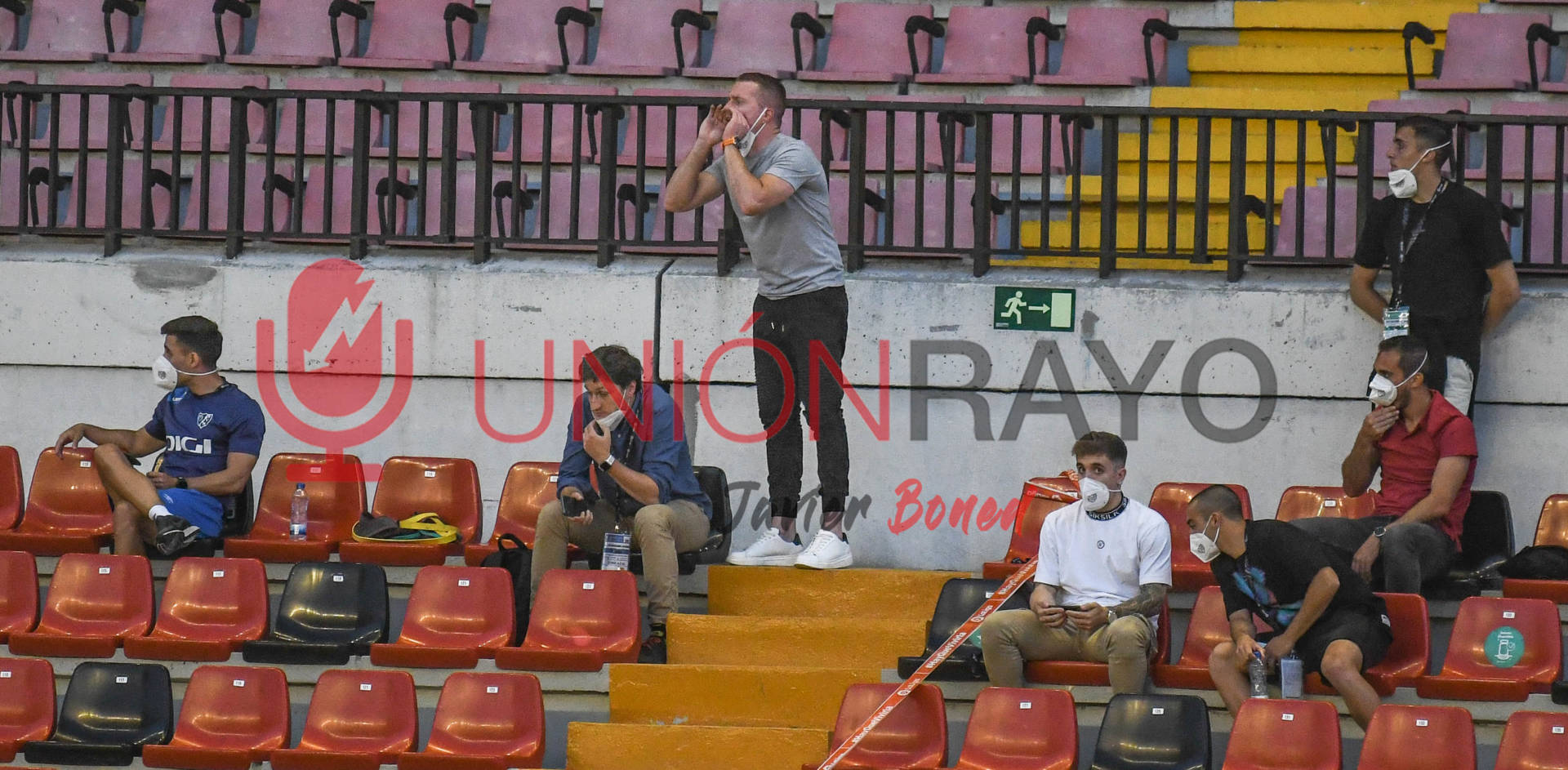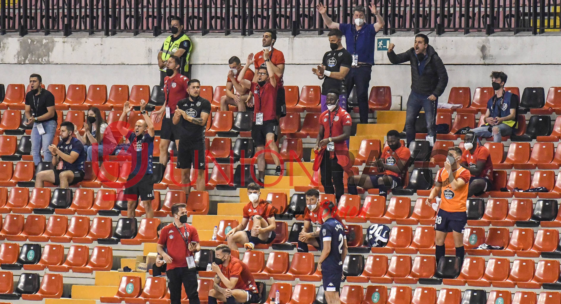 Empieza el nerviosismo en la grada. Los no convocados y empleados atentos a lo que ocurrían en otros estadios. Por ahora empataba el Sporting.