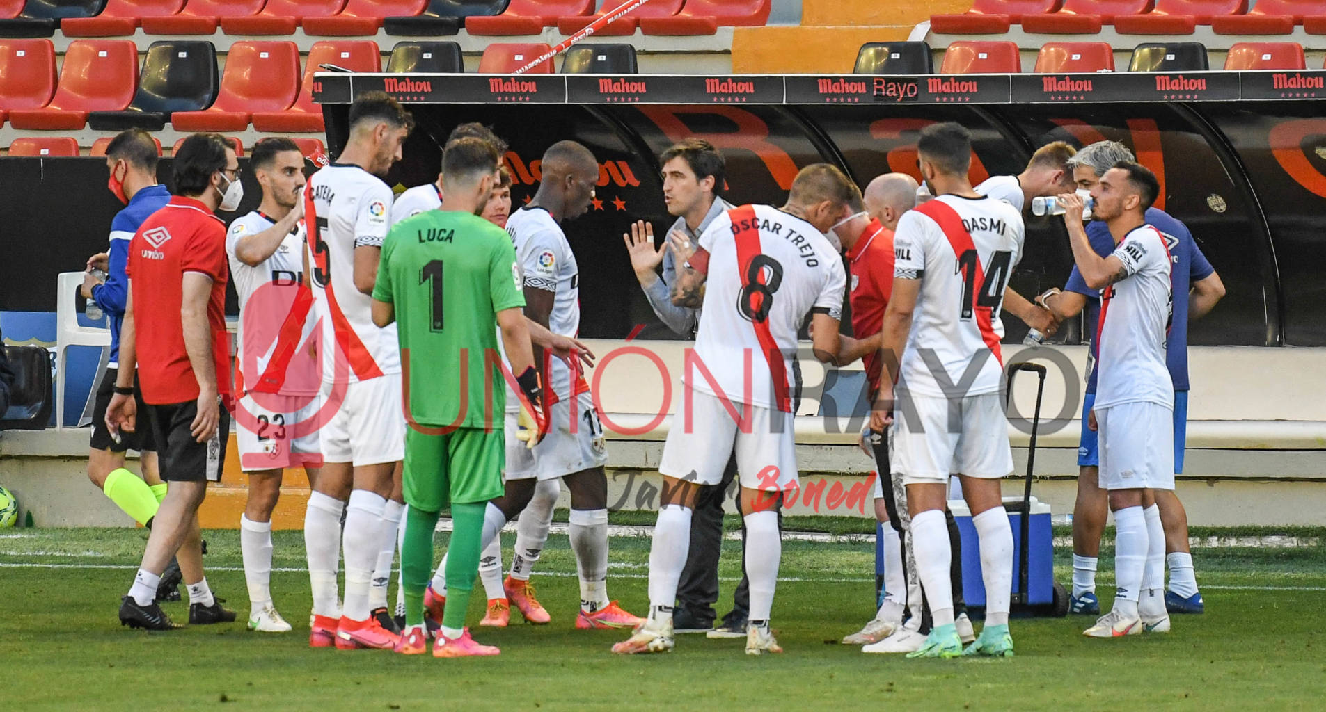Pausa para la hidratación. Momento que aprovecha al máximo Andoni Iraola para realizar indicaciones.
