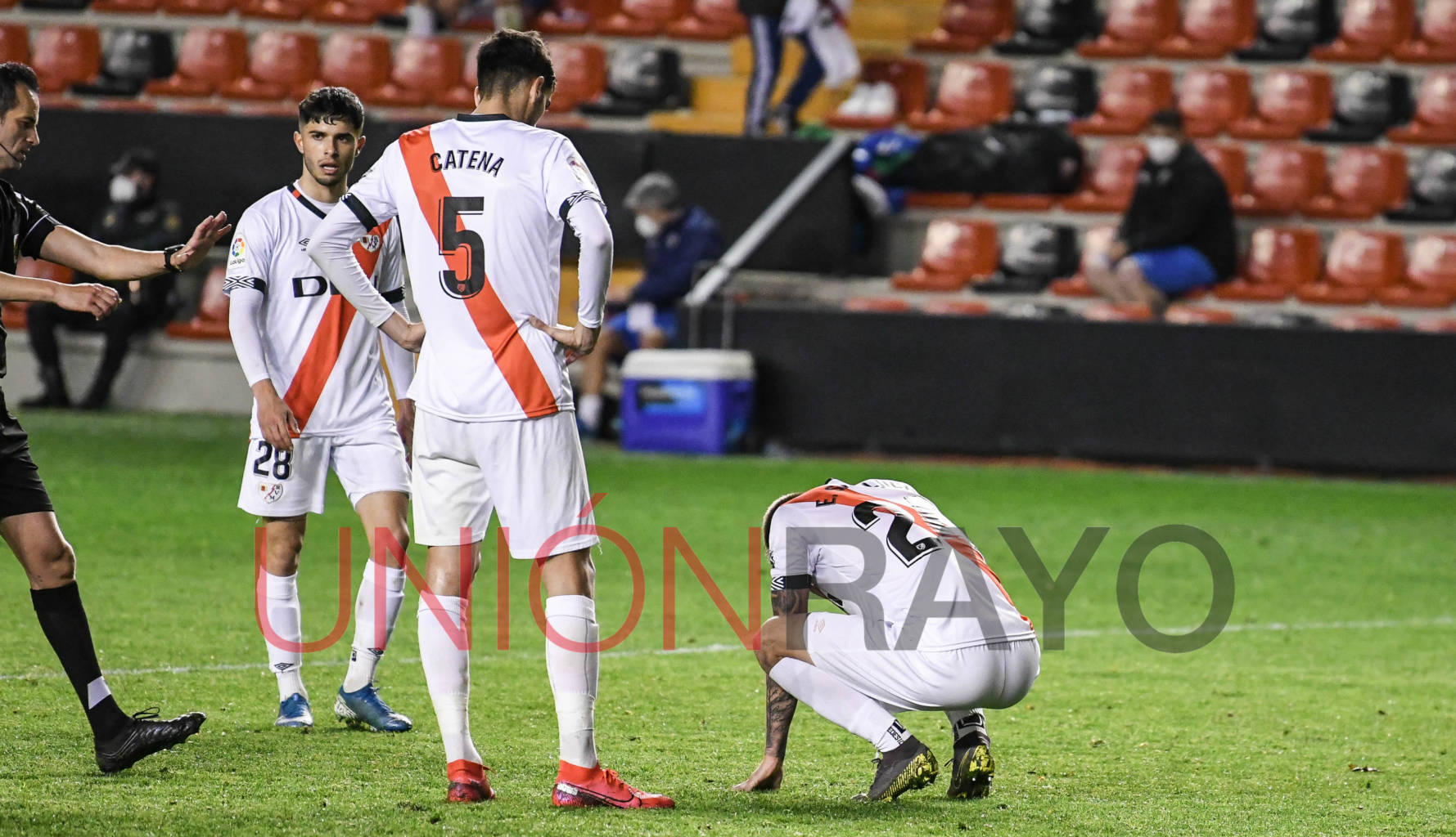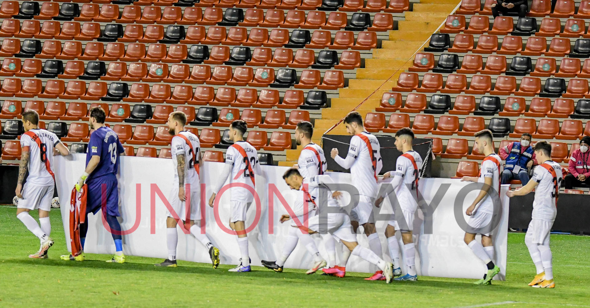 Bonito detalle del Rayo Vallecano. El club quiso homenajear al fallecido Carlos Matallanas con una pancarta y un minuto de silencio. Aunque algunos como Álvaro García quisieron ‘esconderse’.