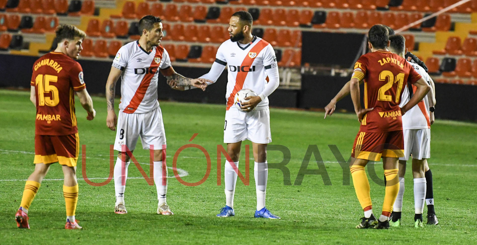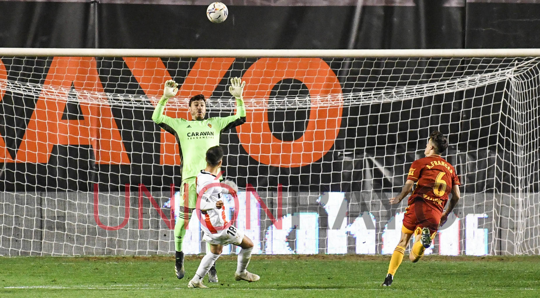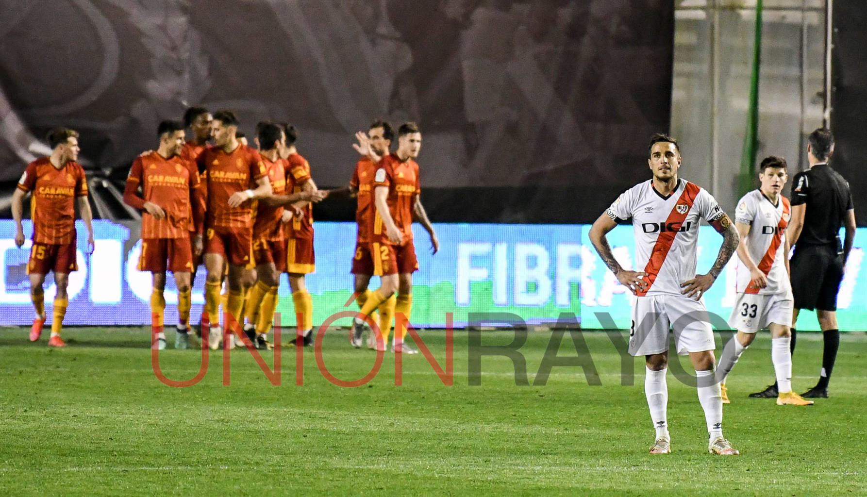 El Real Zaragoza se adelantaba por 0-2 en el estadio de Vallecas. La noche parecía que iba a ser negra. Álvaro García despejó en su propia portería.
