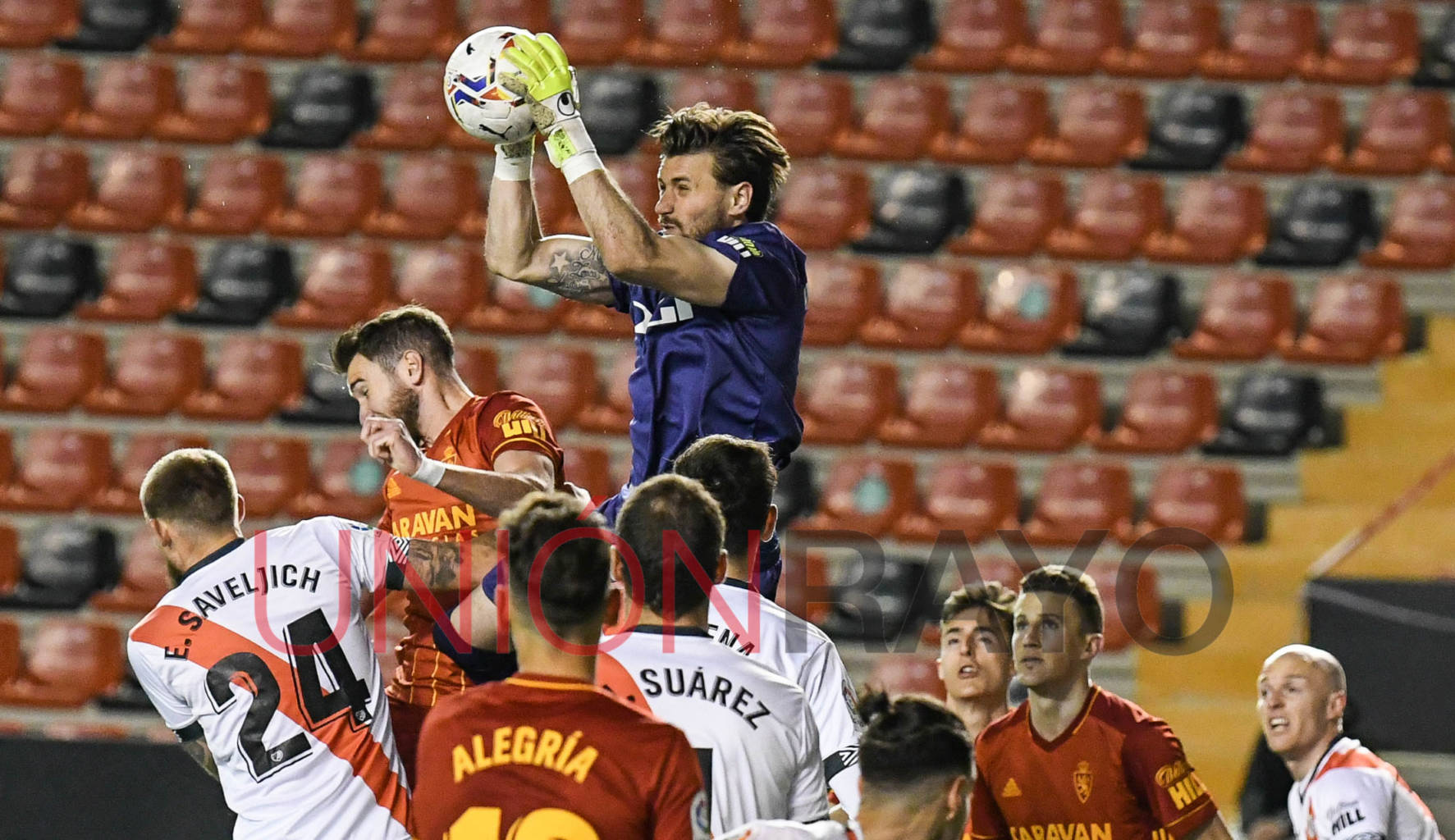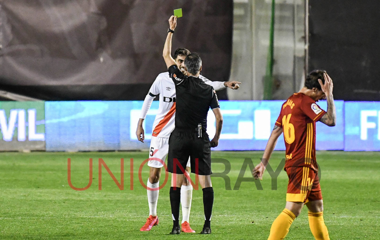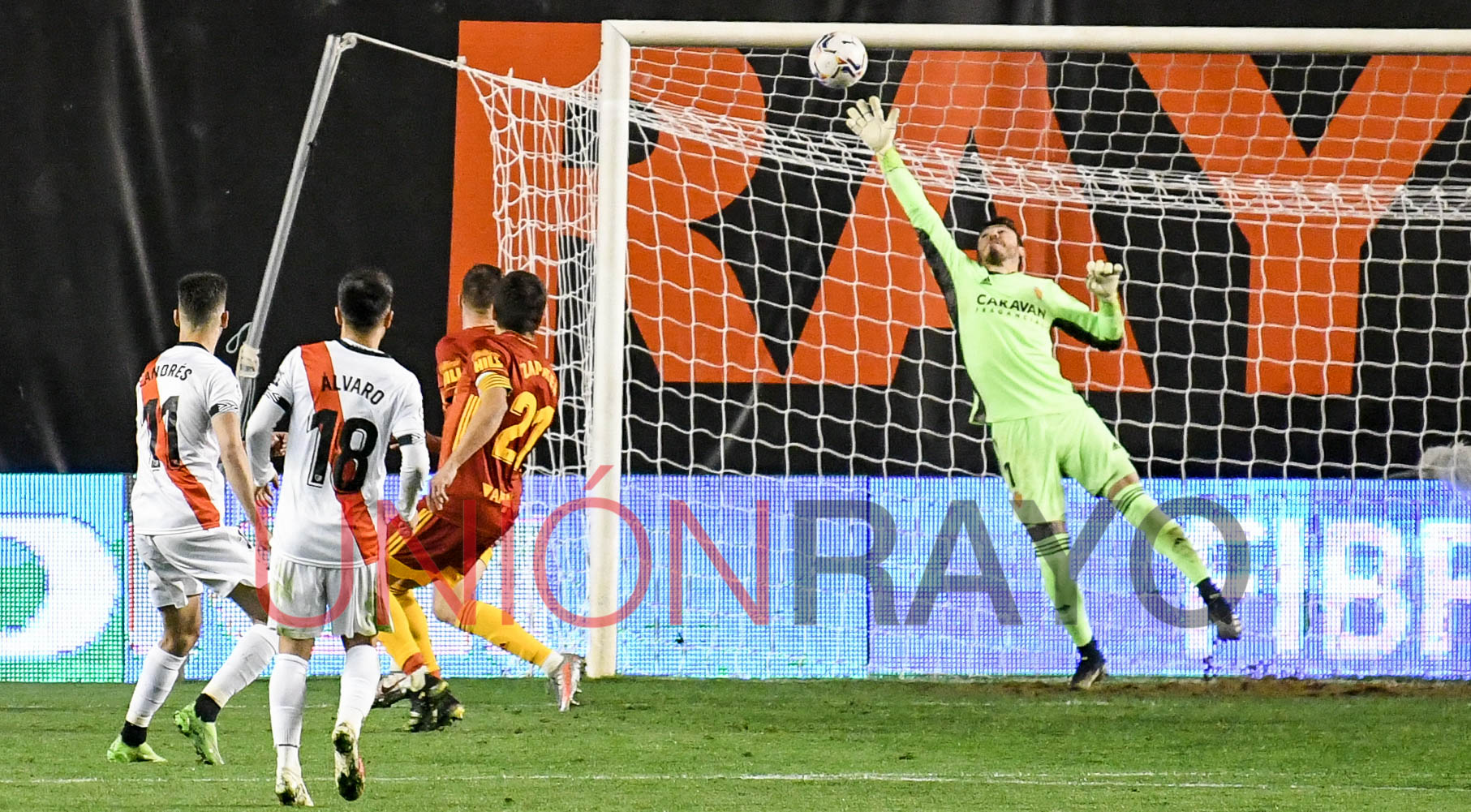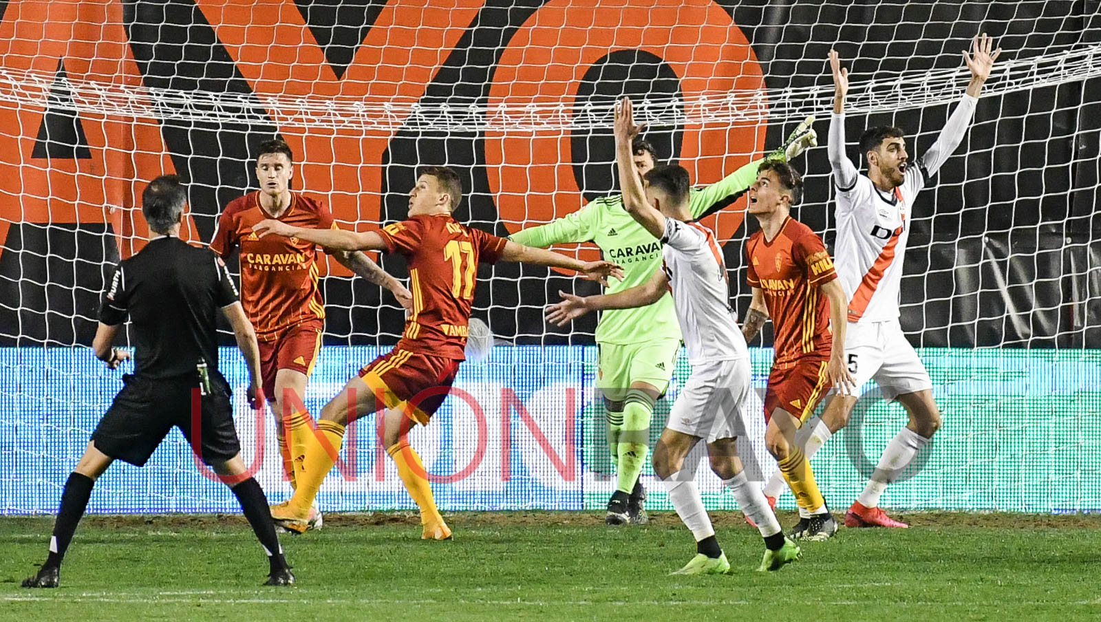 El Real Zaragoza se adelantaba por 0-2 en el estadio de Vallecas. La noche parecía que iba a ser negra. Álvaro García despejó en su propia portería.