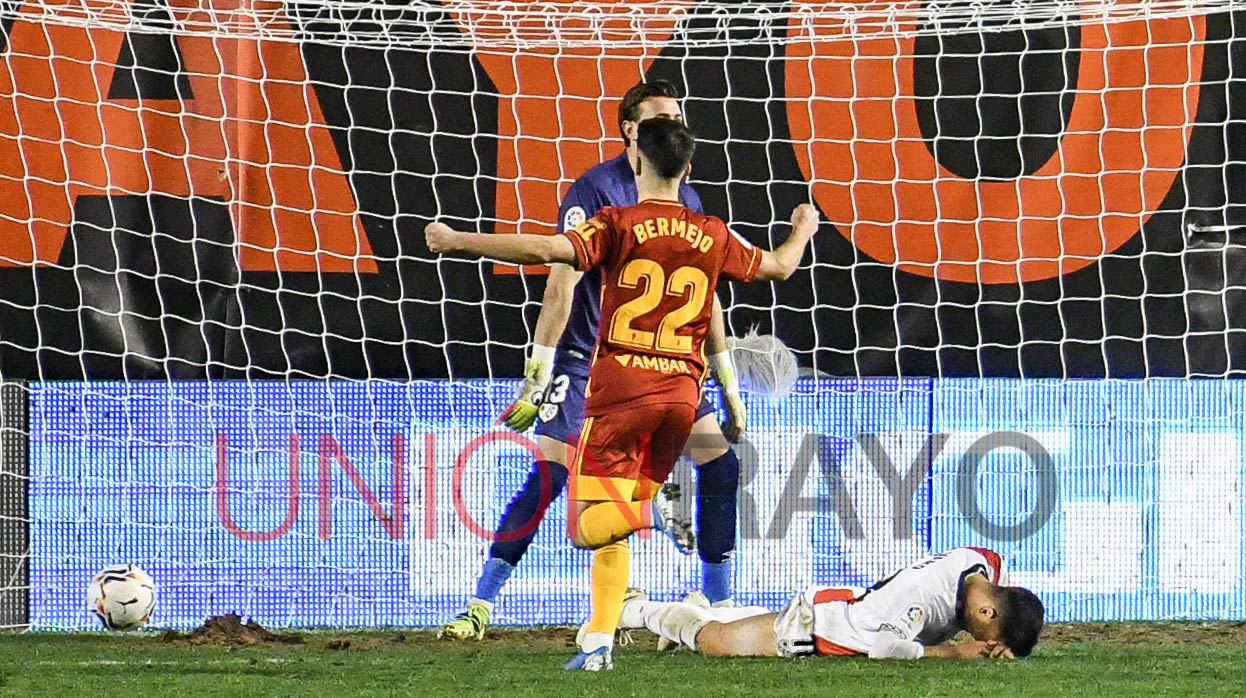 Andrés Martín estuvo cerca de hacer el 3-2 en el marcador. El mediapunta estrelló el balón contra el larguero de Cristian Álvarez. Eran los mejores minutos del Rayo.