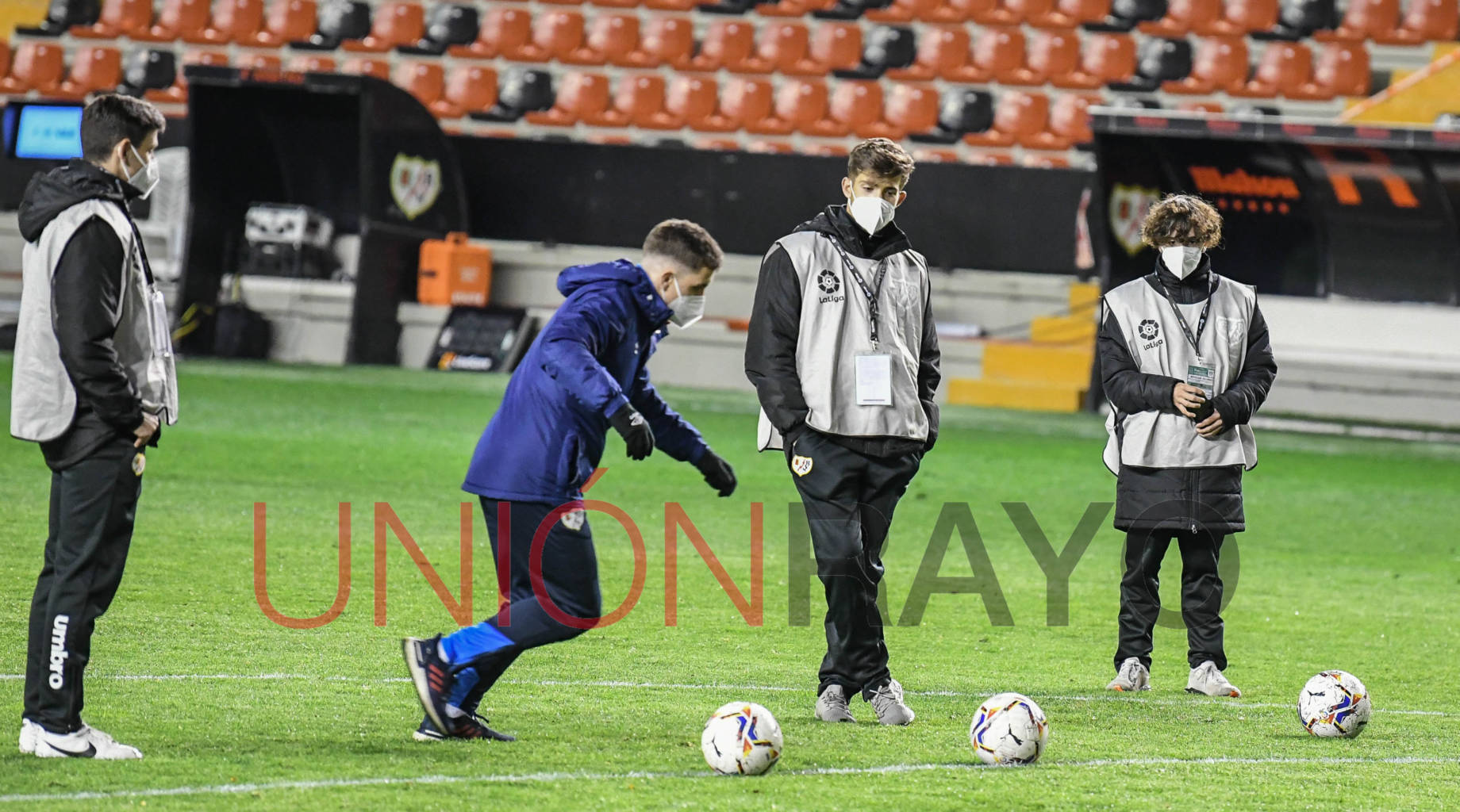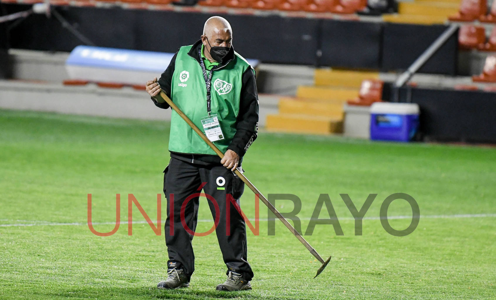 Mimando al césped antes del partido. El Rayo Vallecano ya sabe que el verde del estadio de Vallecas tiene que estar en perfectas condiciones. Su estado mejoró… y el Rayo ganó.