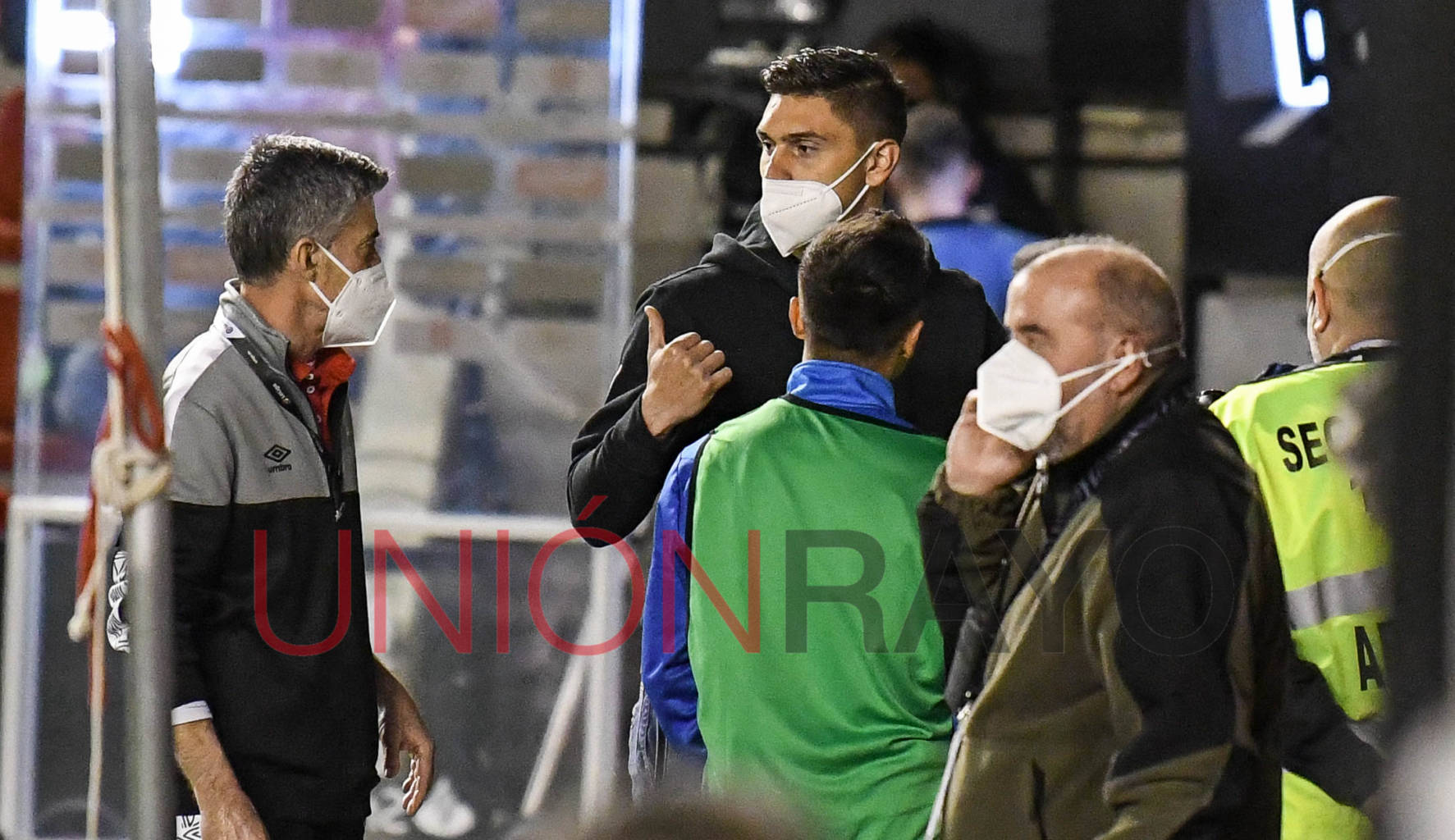 El director deportivo del Rayo Vallecano David Cobeño bajó rápido del campo para acompañar al equipo tras el triunfo ante el Zaragoza.