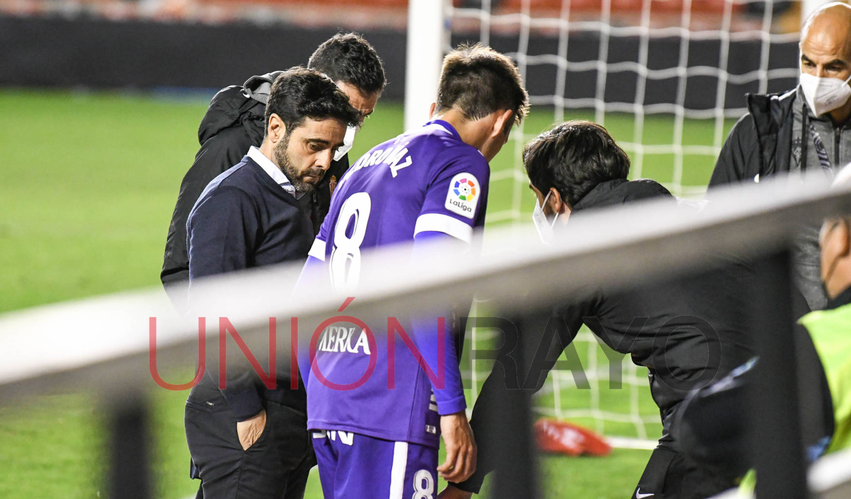 El autor del único gol se marchó con molestias al acabar la primera mitad. Habló con su entrenador al entrar a vestuarios. Finalmente fue sustituído al descanso.