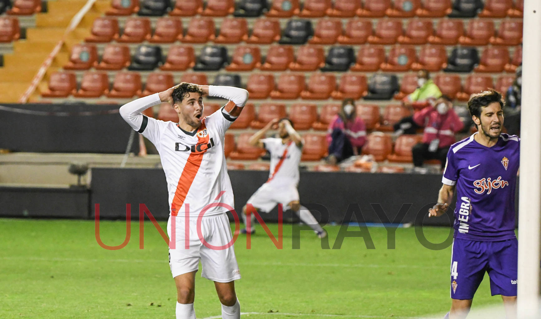 Latigazo de Pedro Díaz para adelantar al Sporting en Vallecas. El centrocampista disparó desde 30 metros y marcó un auténtico golazo.
