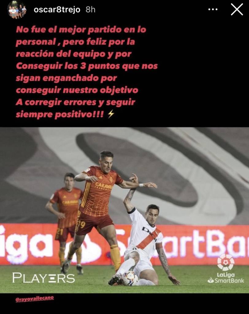 El futbolista habló en redes sociales sobre el encuentro y se mostró feliz por lograr los tres puntos: «No fue el mejor partido en lo personal, pero feliz por la reacción del equipo y por conseguir los tres puntos que nos sigan enganchado por conseguir nuestro objetivo».