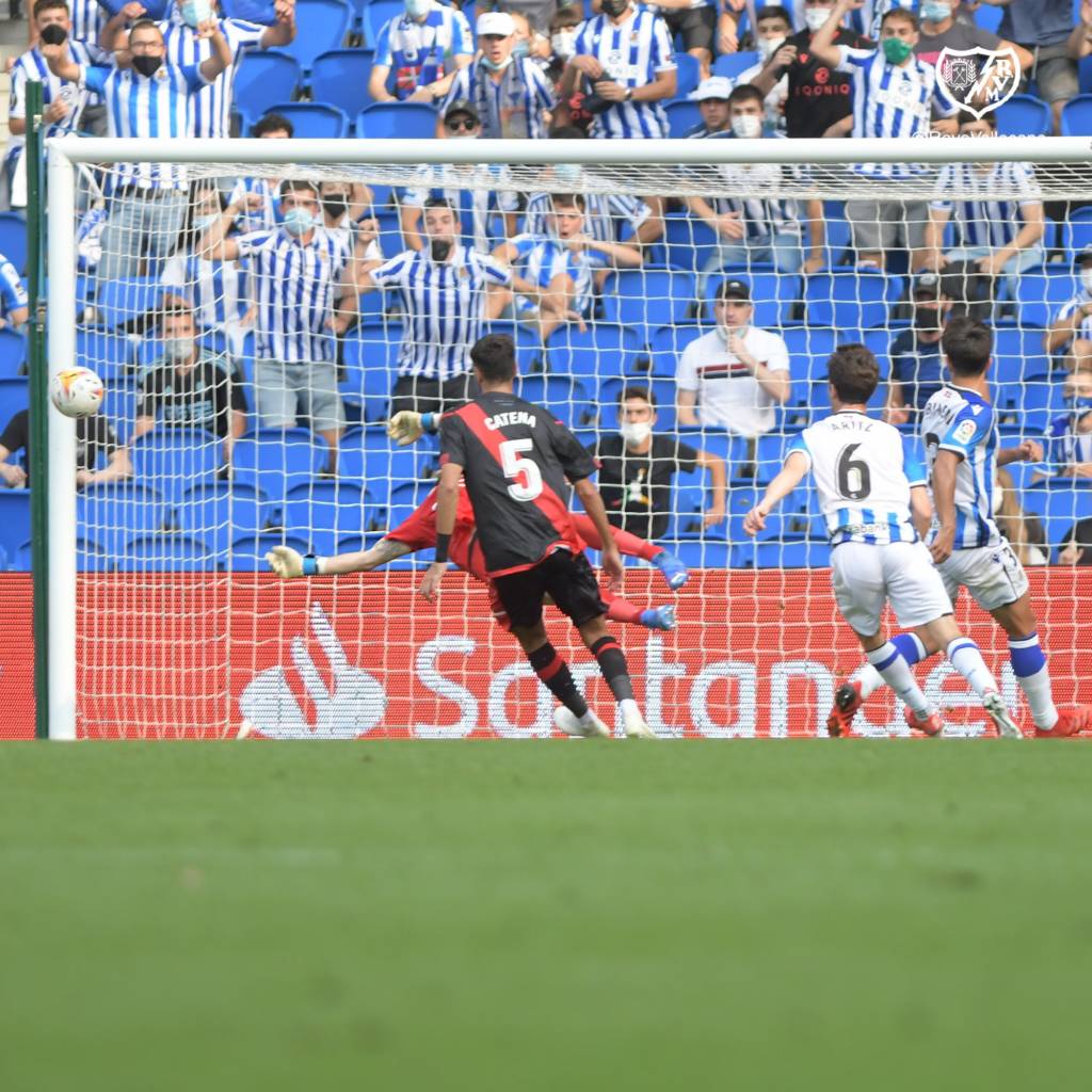 Los penaltis en contra están condenando al Rayo Vallecano. En el primer partido fue Luca Zidane el que cometió la pena máxima y en esta ocasión, una mano de Balliu generó el gol en contra. Los de Iraola que habían estado seguros en defensa vieron como el partido se les ponía a remolque. Oyarzabal (20/22 en penaltis), engañó sin problemas a Dimitrievski. Dos penaltis en contra en apenas dos jornadas.