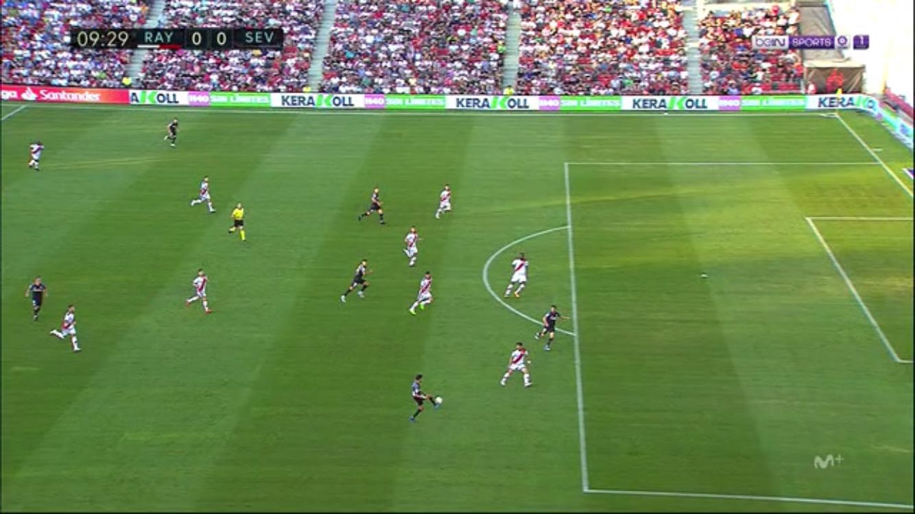 Poco tardó el equipo de Míchel en generar peligro contra la portería sevillista . En el minuto dos de partido Pozo puso un gran pase en profundidad con el que Embarba se quedó solo y batió a Vaclik, pero el linier anuló la jugada por fuera de juego del futbolista del Rayo Vallecano.