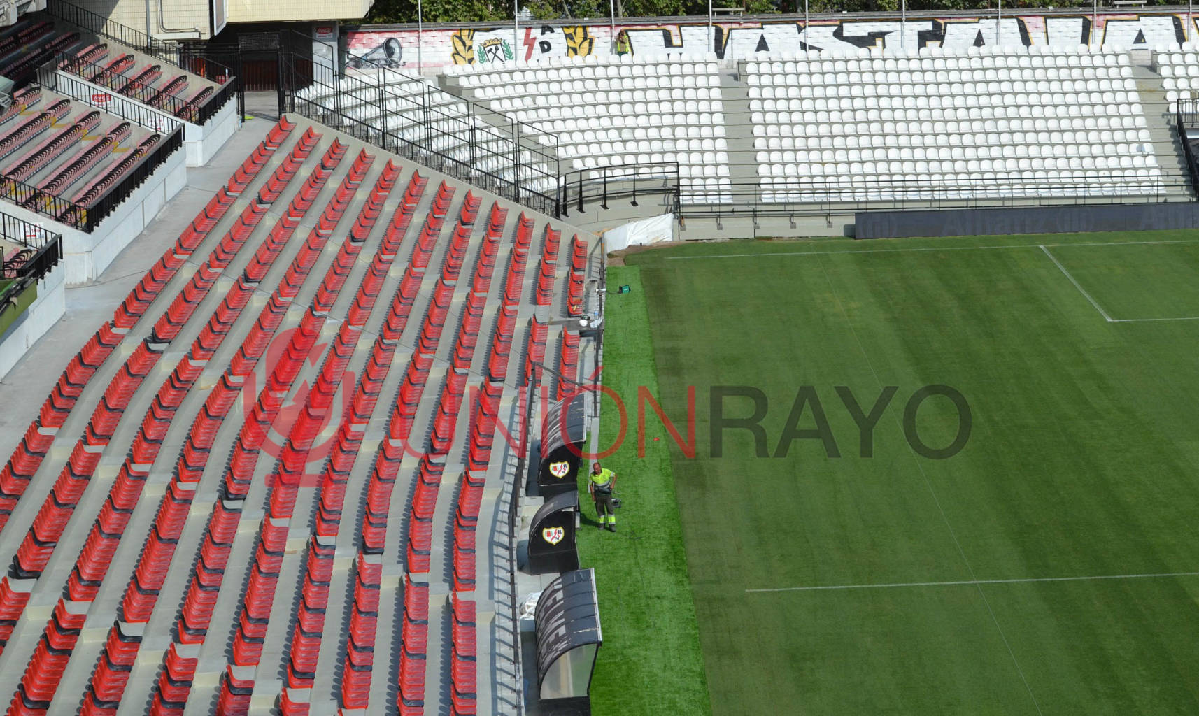 A algo más de un día del primer encuentro, todo está prácticamente listo para el debut del Rayo Vallecano. Las obras no han terminado, pero pararán unos días para afrontar el encuentro.