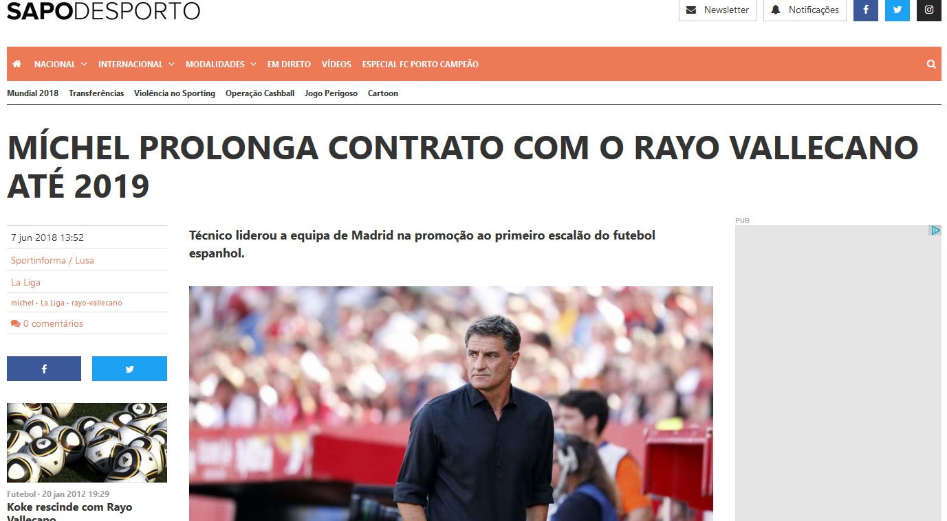 Pero fuera de España cuesta un poquito más reconocerle…. Tanto que el diario portugués Sapo Desporto nos deja una de las curiosidades del día al reflejar en su web la noticia de la renovación de Míchel.