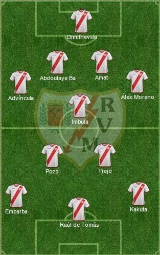 Kakuta vence con solvencia como primer extremo con un 59%. Le sigue Embarba con un 22% y Álvaro García con un 13%. En cuanto al segundo extremo, la igualdad es casi total, ya que Embarba ha conseguido 33% y Álvaro García un 32%. Por otra parte, en la punta del ataque rayista, el resultado es demoledor. Raúl de Tomás se ha llevado un 93% de las votaciones. Totalmente distanciado de Sergio Moreno (5%), Álex Alegría (1%) y Javi guerra (1%). La delantera franjirroja quedaría de este modo: Embarba-Raúl de Tomás-Kakuta.