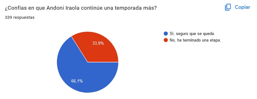 Un 34% no confía en que Iraola siga otra temporada en Vallecas y consideran que el entrenador ha finalizado ya su etapa en el club vallecano.