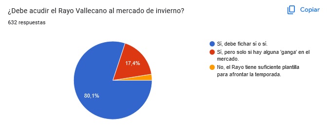 En la encuesta realizada en Unión Rayo, el 97% de los aficionados rayistas (más de 600 participantes) creen que debe acudir al mercado de invierno; aunque un 17% piensa que solo si hay una ‘ganga’ para fichar. Apenas un 3% considera que no debe firmar nada.