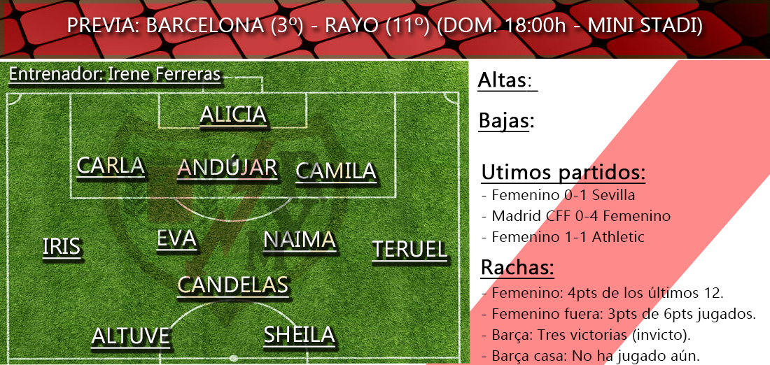 Tras el parón de una semana por selecciones, vuelve LaLiga Iberdrola con toda su emoción. Uno de los partidos será el que enfrente al Rayo Femenino ante el FC Barcelona en el Mini Estadi. El conjunto de Irene Ferreras quiere hacer valer esos 4 puntos conseguidos en las dos últimas jornadas ante el Madrid CFF y el Athletic Club.