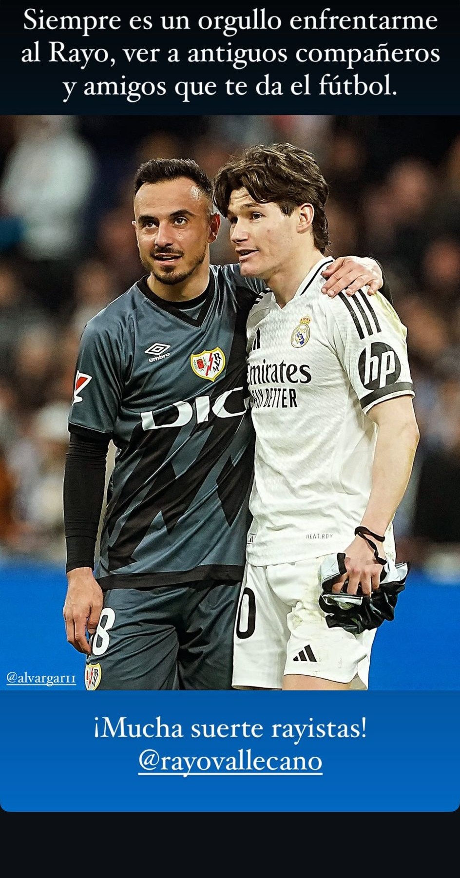 «Siempre es un orgullo enfrentarme al Rayo, ver a antiguos compañeros y amigos que te da el fútbol. ¡Mucha suerte rayistas!», ha escrito Fran García en su perfil de Instagram. Un mensaje que ha acompañado junto a una fotografía con Álvaro García, su gran amigo y con el que tantas internadas realizó en la banda izquierda de Vallecas.