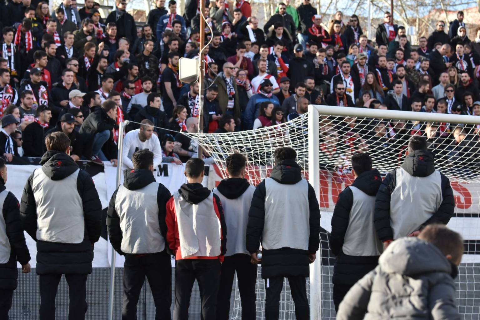 Los futbolistas de la primera plantilla salieron para agradecer el apoyo de la afición durante el choque contra los catalanes. Pero la hinchada no quiso dejar pasar por la alto la presencia de los jugadores del Juvenil A, quienes también recibieron un mensaje de apoyo de cara a los tres partidos de Liga que todavía le restan para hacerse con el título. Palabras en las que se aludió a la importancia de quedar campeones por encima de Real Madrid y Atlético de Madrid.