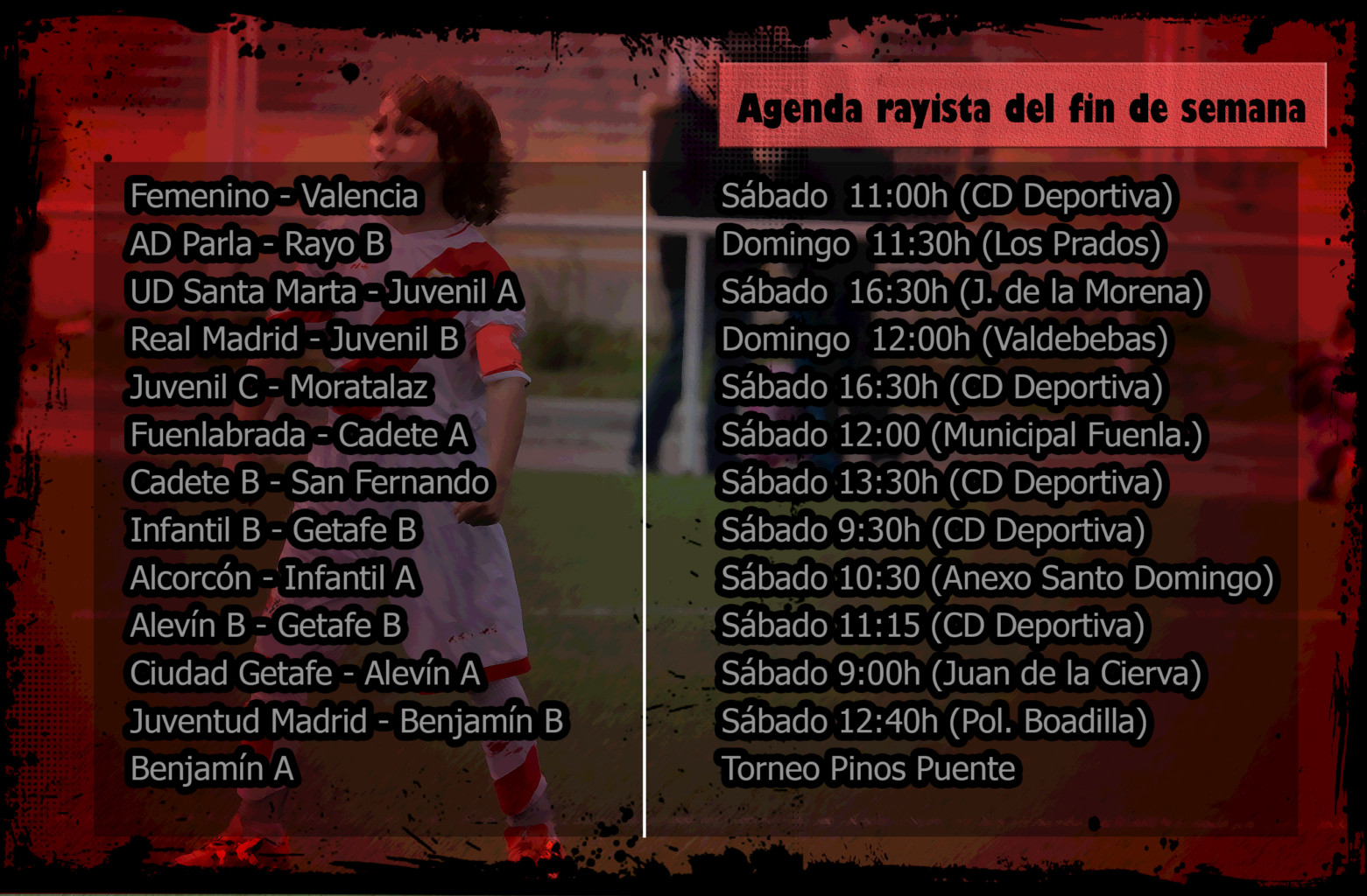 En Unión Rayo repasamos los horarios en los que se van a disputar los partidos de los distintos equipos del Rayo Vallecano en el fin de semana del 15-16 de diciembre.