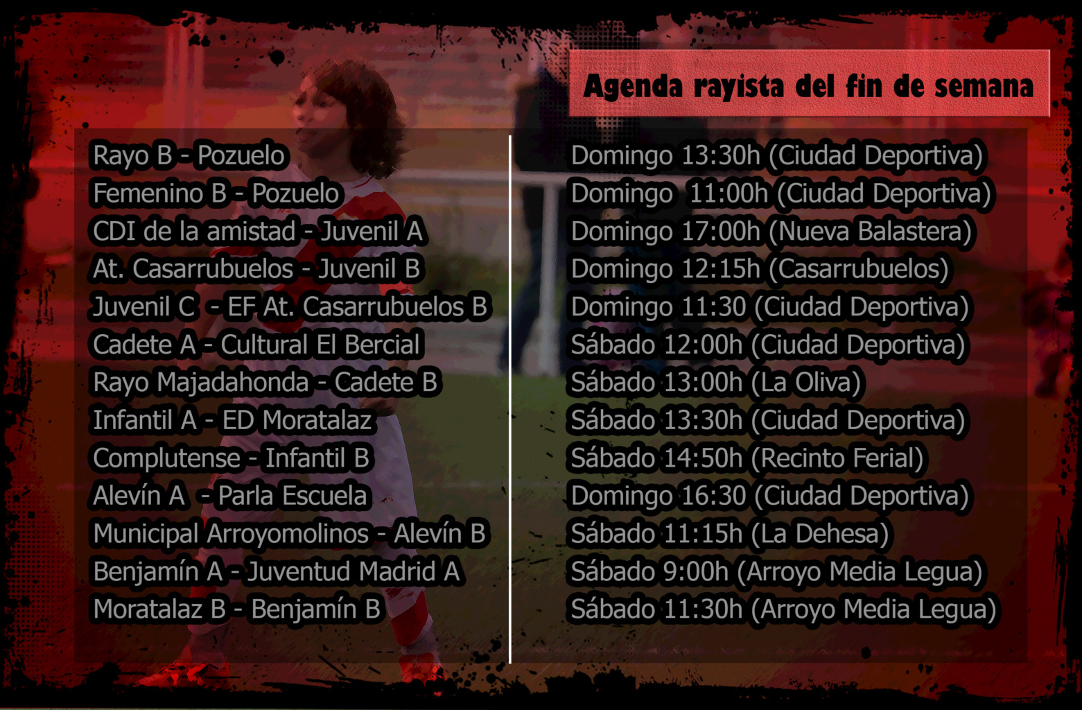 Horarios de los equipos del Rayo Vallecano (16-17 febrero)