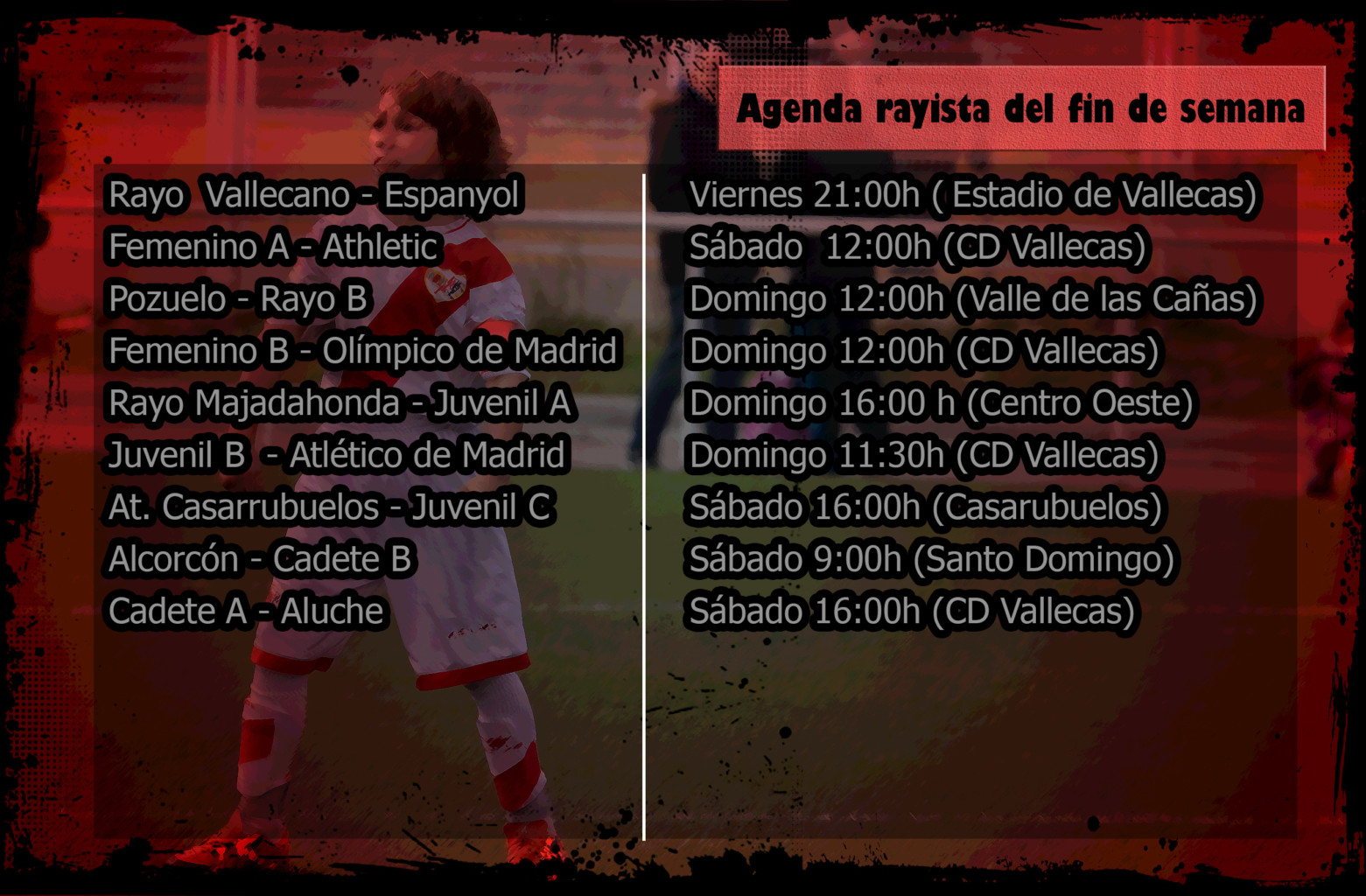 En Unión Rayo repasamos los horarios en los que se van a disputar los partidos de la cantera del Rayo Vallecano en el fin de semana del 29-30 de septiembre.