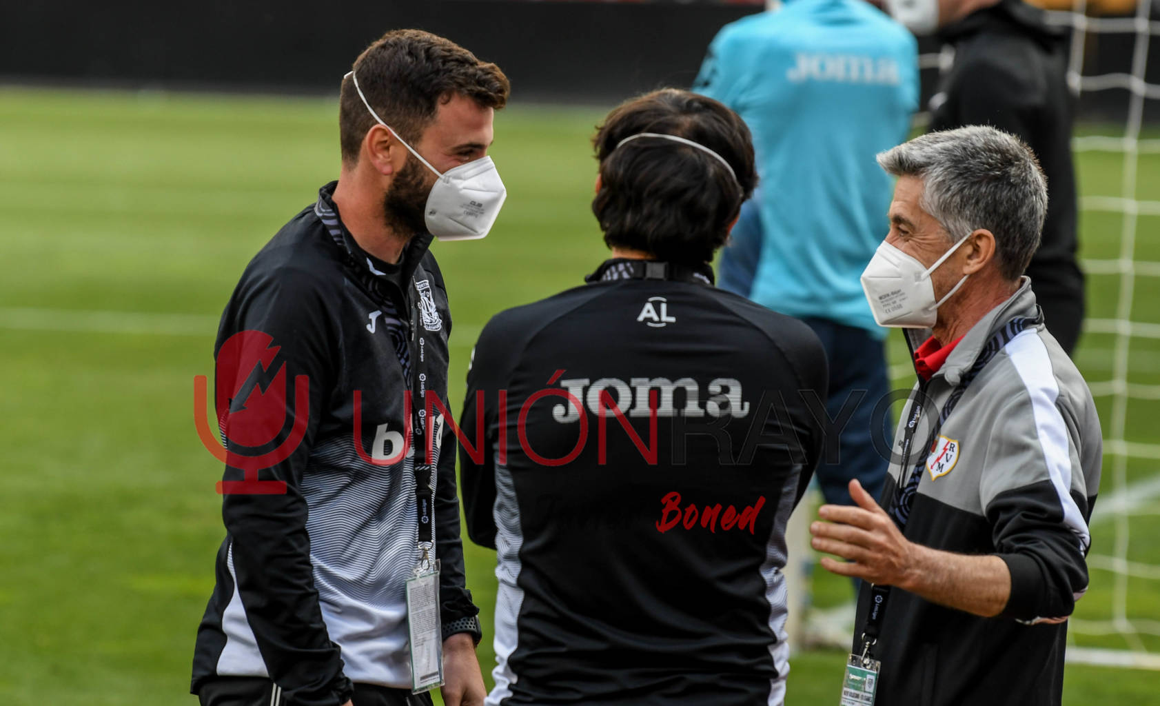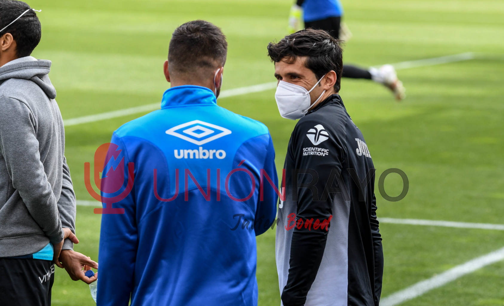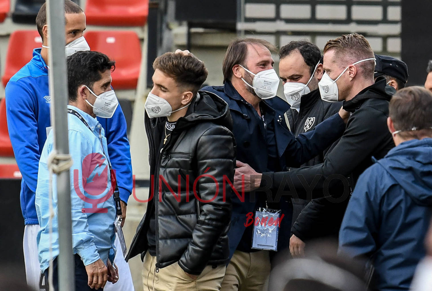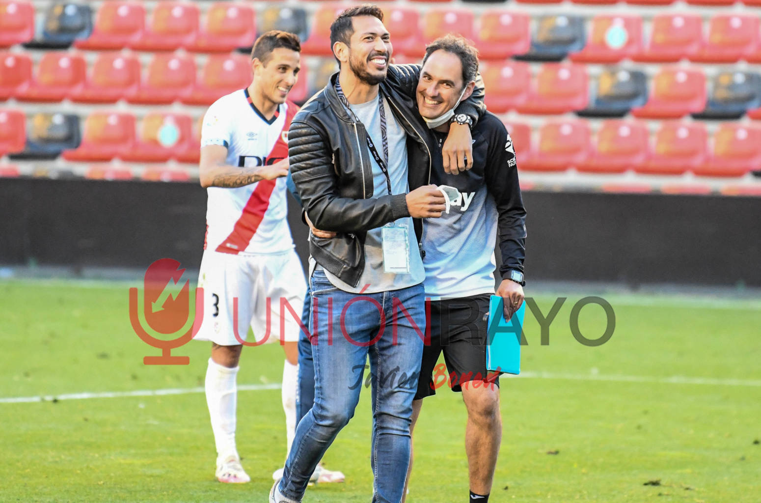 Gran noticia. El ex jugador del Rayo Vallecano y delegado del equipo Miguel Ortiz regresó al campo de Vallecas. Ortiz, acompañado por Cobeño, recibió el cariño de todos.