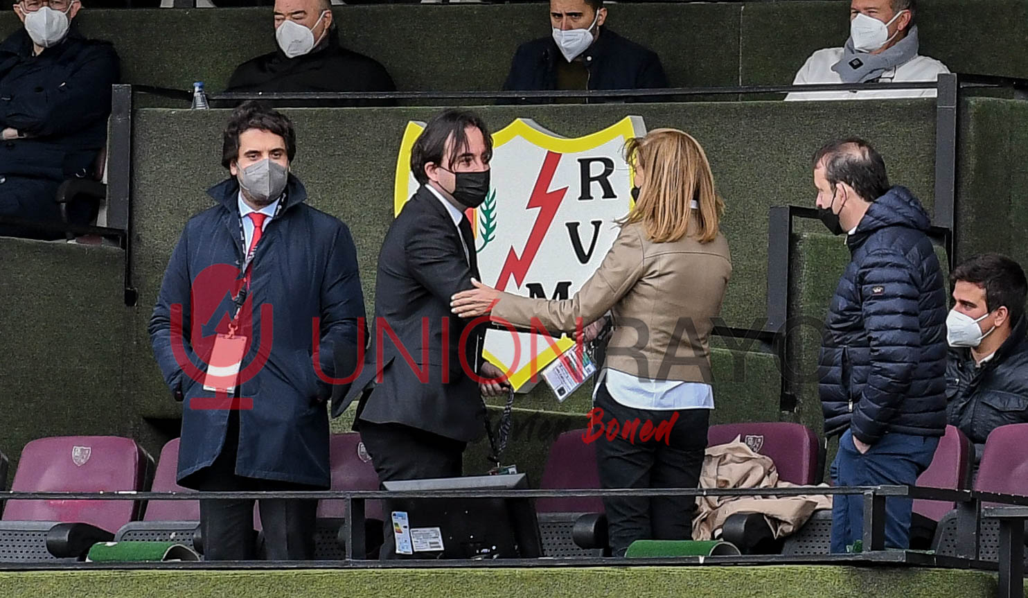 El presidente del Rayo Vallecano Raúl Martín Presa esta vez no protagonizó ninguna noticia en el palco. El mandatario saludó a la presidenta del Leganés a su llegada.