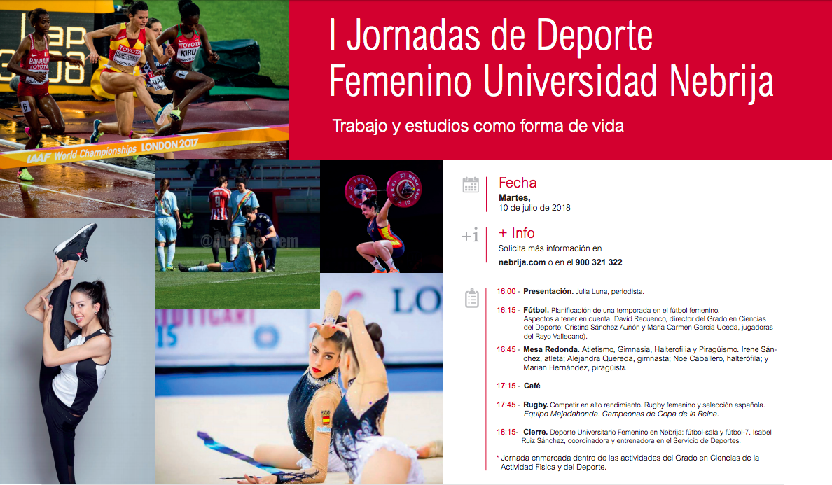 Se trata de una jornada inmersa dentro de las actividades del Grado en Ciencias de la Actividad Física y del Deporte que tiene la Universidad Nebrija. El acto se celebrará el día 10 de julio de 16h a 19h.