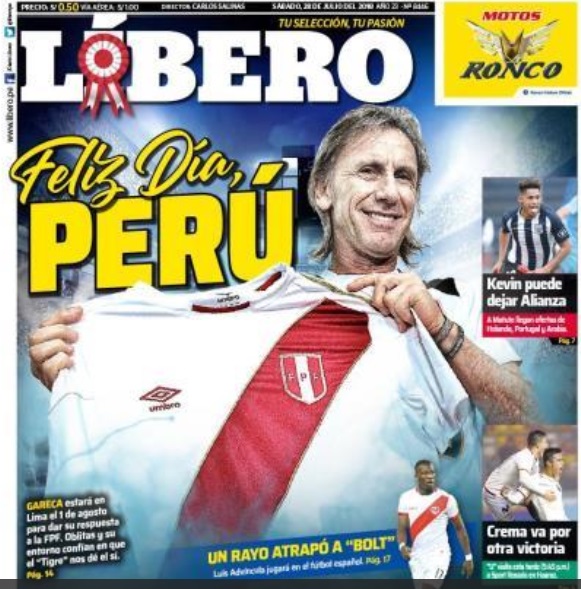 Por otra parte, el diario Libero también lleva en su portada el fichaje de internacional peruano por el equipo de Vallecas: «Un Rayo atrapó a Bolt. Advincula jugará en el fútbol español».