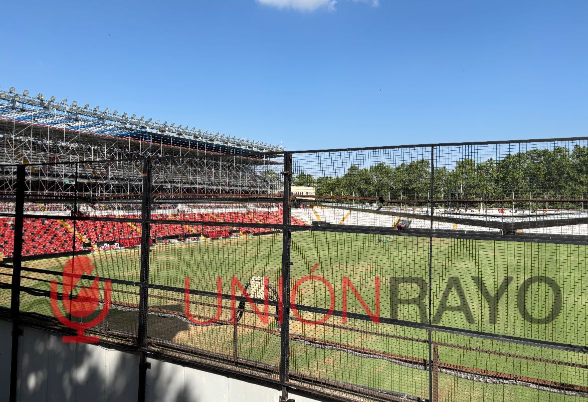 El Estadio de Vallecas sigue con la lona en el fondo de Teniente Muñoz Díaz, la cual había sido retirada durante todo el verano a raíz de las obras que se ejecutaban en esa zona. La colocación se produjo en la madrugada previa al partido de vuelta del Rayo Vallecano de la Conference League ante el Neman Grodno, después de unos trabajos nocturnos que también sirvieron para ultimar la colocación de muros y ajustar la instalación televisiva necesaria para el choque europeo.