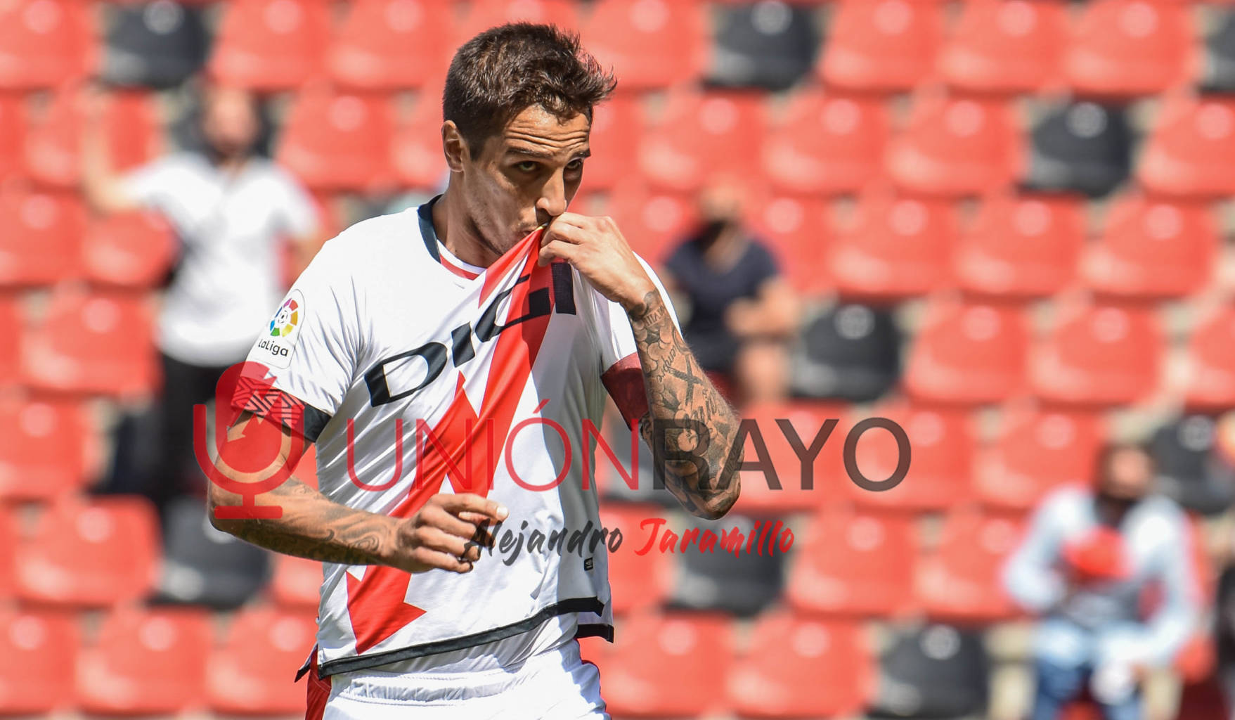 Sin duda, los futbolistas son uno de los elementos más demandados por los aficionados para ocupar el fondo de sus pantallas de móvil. Entre las fotos que recomendamos en este caso están algunas de las más significativas de este Rayo Vallecano. Por ejemplo, futbolistas como Santi Comesaña, Bebé, Isi o Saveljich aparecen en las imágenes que bien pueden valer como fondo de pantalla, ya que en muchos de esos casos están celebrando un gol. De todas formas, siempre puedes elegir a tu futbolista preferido para usarlo como imagen para el fondo de tu teléfono móvil. Por su puesto, entre las fotos que hemos seleccionado está Falcao, uno de los grandes ídolos del momento. Su fichaje por el Rayo Vallecano ha despertado toda la ilusión del mundo entre muchos aficionados, que no han dudado en comprar una camiseta con su nombre, del mismo modo que también podrían usar una de estas dos imágenes que fueron del momento del disparo de su primer gol con el Rayo Vallecano así como la celebración. Y precisamente, si hablamos de celebración, que mejor recuerdo que ese beso al escudo del capitán franjirrojo: Trejo, con su gol precisamente en el mismo partido ante el Granada.