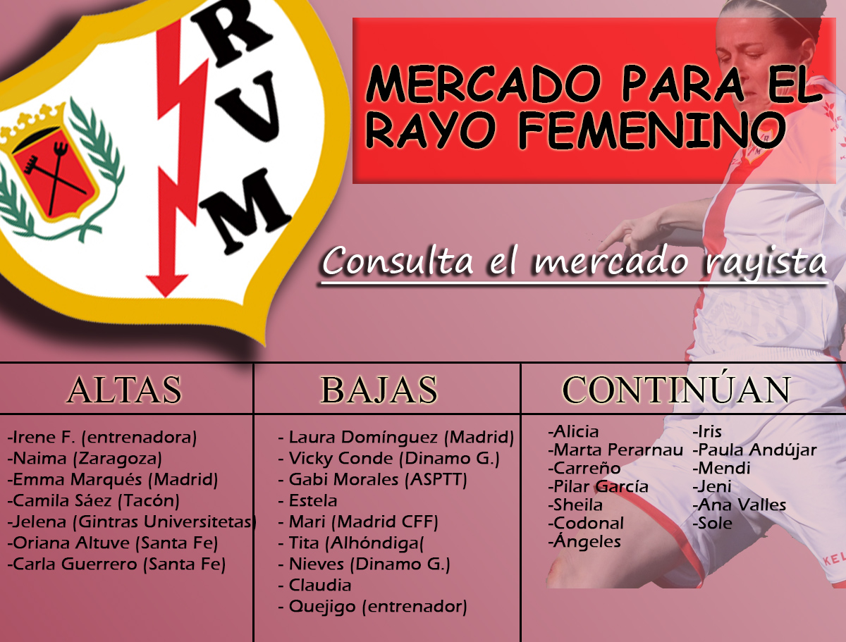 A continuación reflejamos las noticias relacionadas con las altas y bajas del Rayo Femenino para la temporada 2018-2019 en LaLiga Iberdrola.