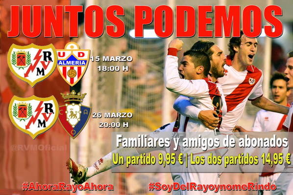 El Rayo Vallecano necesita el apoyo de todos en este tramo final de Liga. Tú eres parte importante en la...