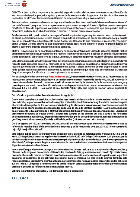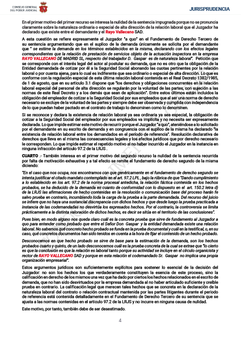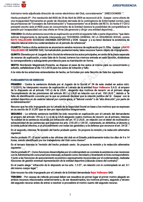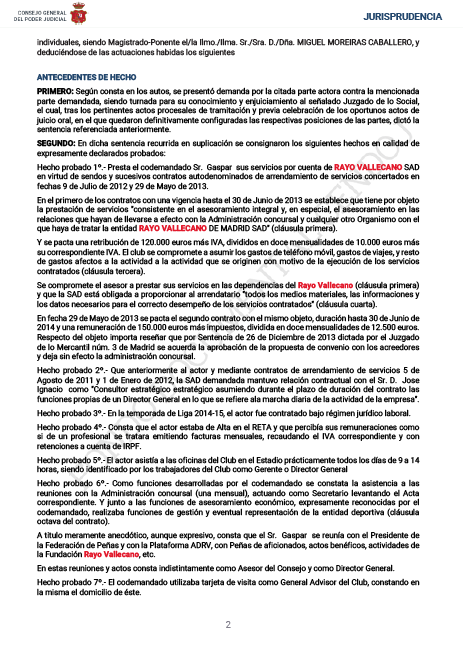 De este modo, el auto judicial refleja que el Rayo Vallecano no pagó las cuotas de la Seguridad Social por el trabajador Luis Yáñez, Director General del club, desde julio de 2012 hasta junio de 2014.