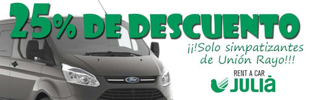 Julia ofrece un 25 por ciento de descuento para los simpatizantes de Unión Rayo en Julia Rent a Car (descuento sobre el precio diario sin el 21% IVA). La oferta será para todos los nuevos clientes que contacten con Julia en nombre de UNION RAYO.