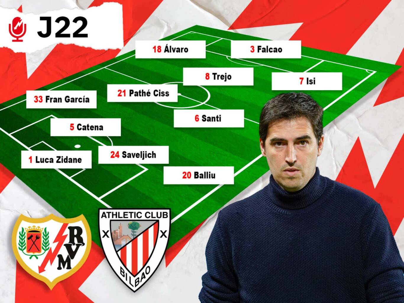 El técnico Andoni Iraola sorprende con la titularidad de Luca Zidane tras recuperar a Dimitrievski. Vuelven al once Álvaro y Falcao mientras que Ciss sustituye al sancionado Óscar Valentín.