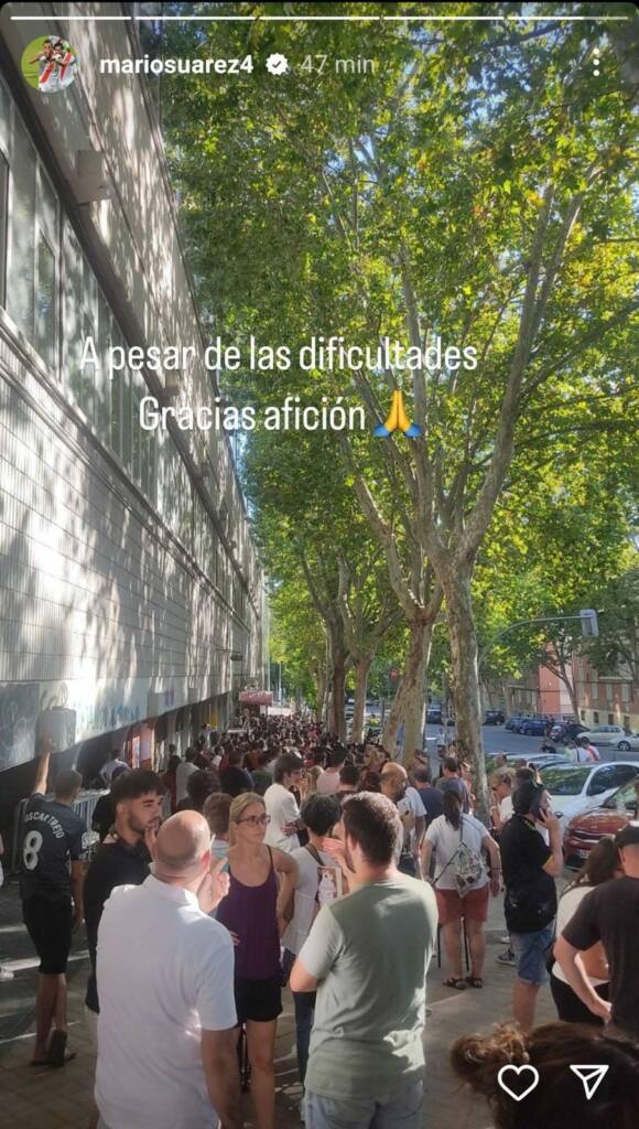 Óscar Trejo y Mario Suárez muestran su apoyo a la afición que llevan horas para sacar un abono