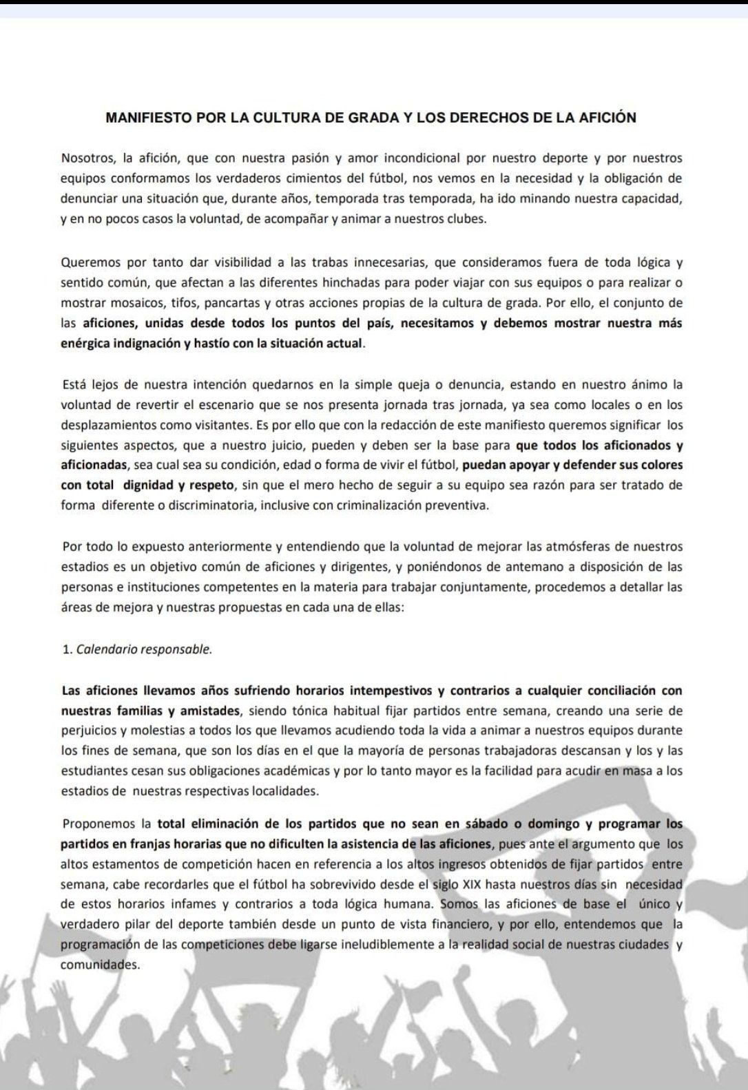 “Manifiesto por la cultura de Grada y los Derechos de la Afición”