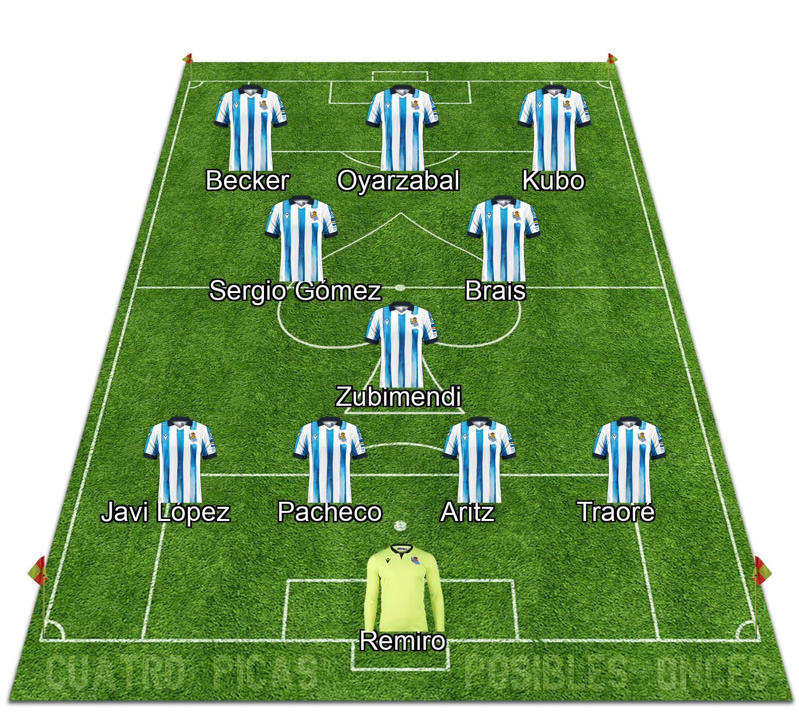 Posible 11: Remiro – Javi López, Pacheco, Aritz, Traoré – Sergio Gómez, Zubimendi, Brais – Becker, Oyarzabal, Kubo. Imanol tiene prácticamente decidido su once ante el Rayo Vallecano, pero aún así puede que haya alguna novedad en el día del partido.