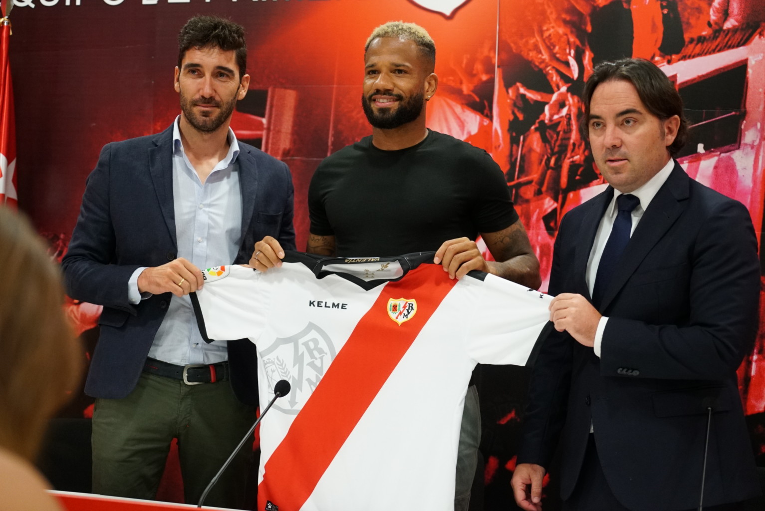 Presentación de los últimos jugadores que han llegado al Rayo Vallecano. El primero en hablar es Raúl de Tomás. Posteriormente, se presentarán otros cinco: Gálvez, Imbula, Bebé, Dimitrievski y Alex Alegría como jugadores de Rayo Vallecano en la Ciudad Deportiva de Vallecas.